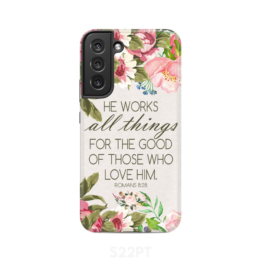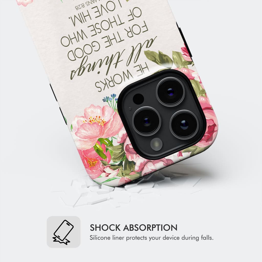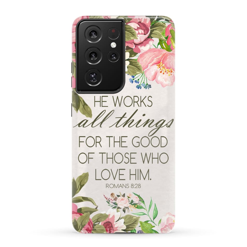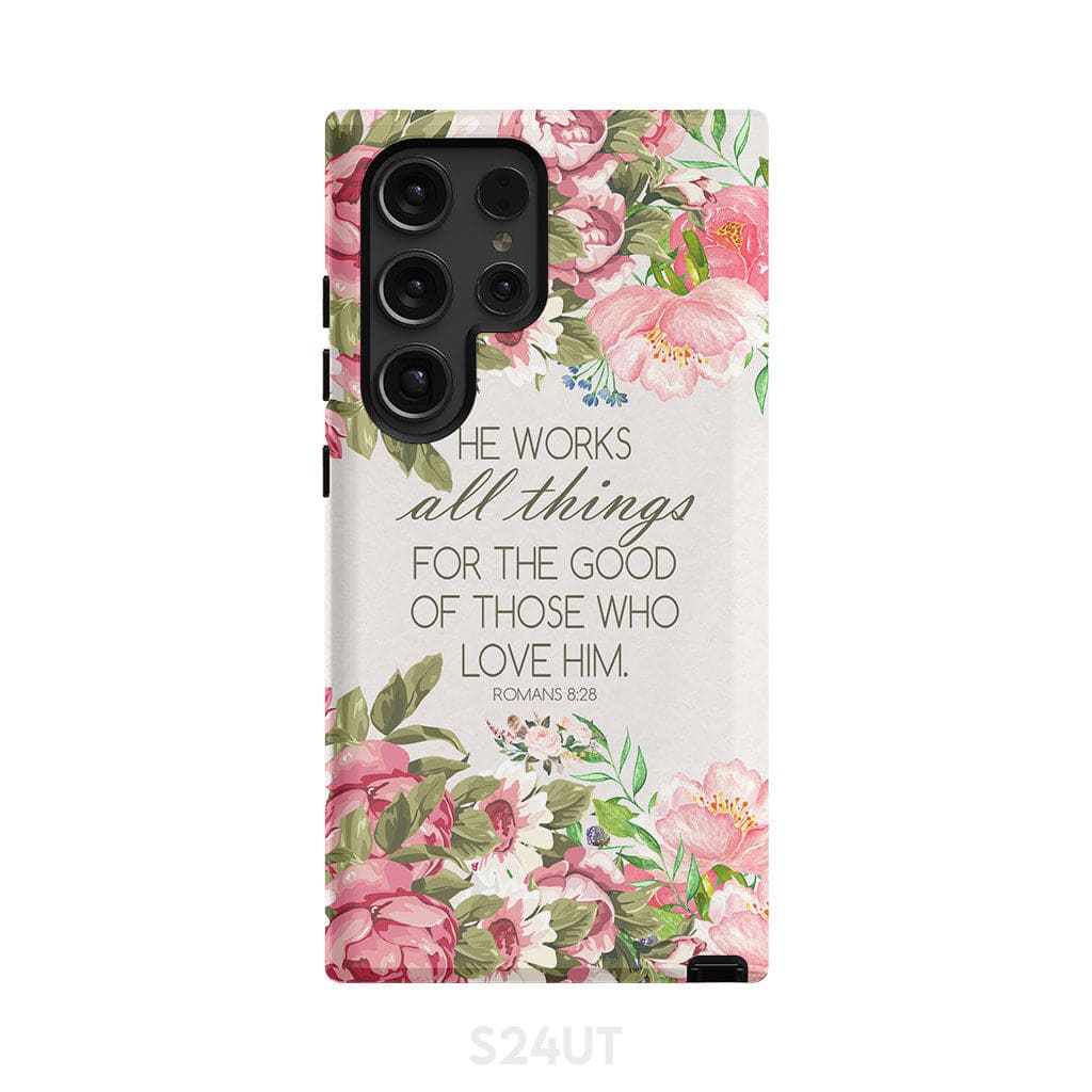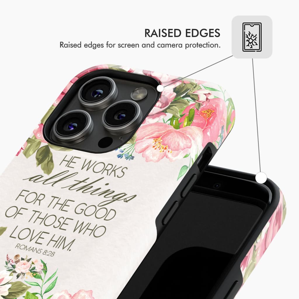 He Works All Things For Good Romans 8:28 Bible Verse Phone Case