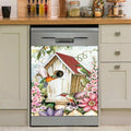 Birdhouse Hummingbird Pink Flower Garden Dishwasher Cover, Christian Dishwasher Magnet Cover, Bible Verse Kitchen Decor
