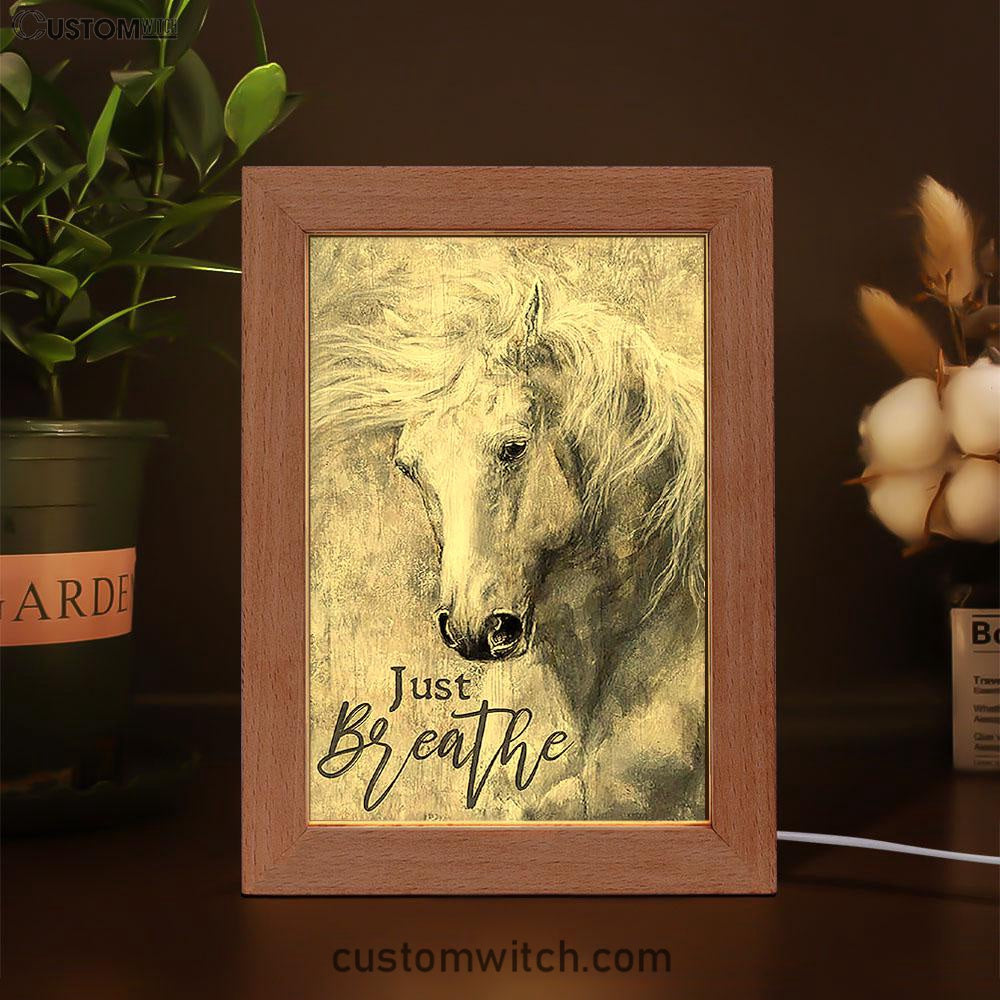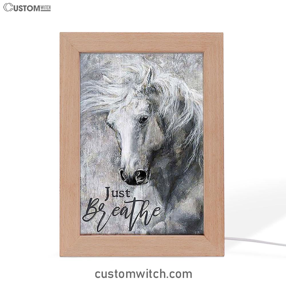 Black And White Horse Just Breathe Frame Lamp Art - Christian Frame Lamp - Gift For Horse Lover