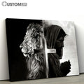 Black And White Lion Of Judah And Jesus Pray Canvas Wall Art - Bible Verse Canvas - Religious Prints