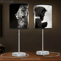 Black And White Lion Of Judah And Jesus Pray Table Lamp Gift - Bible Verse Table Lamp - Religious Bedroom Decor