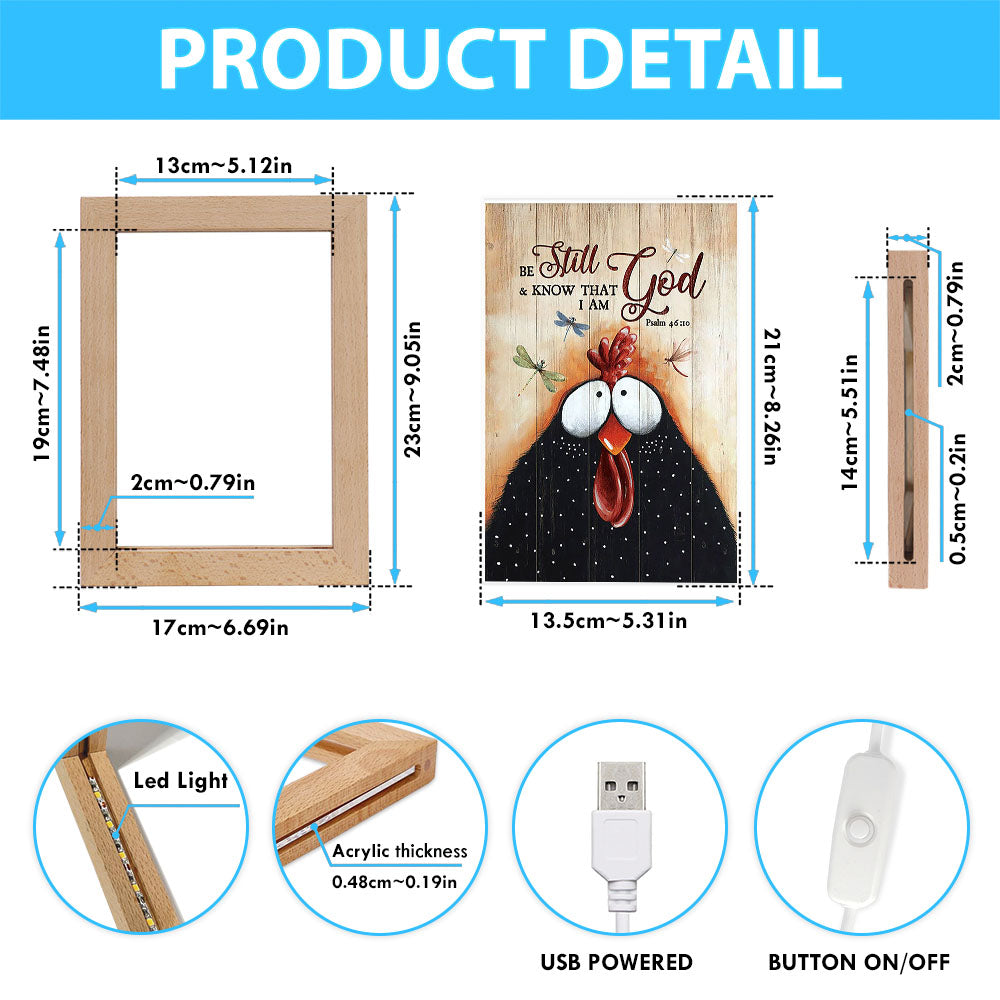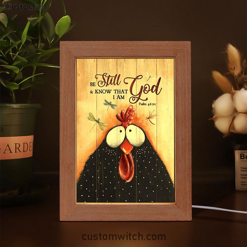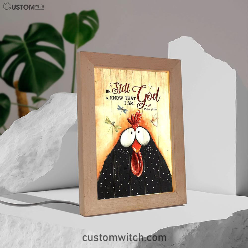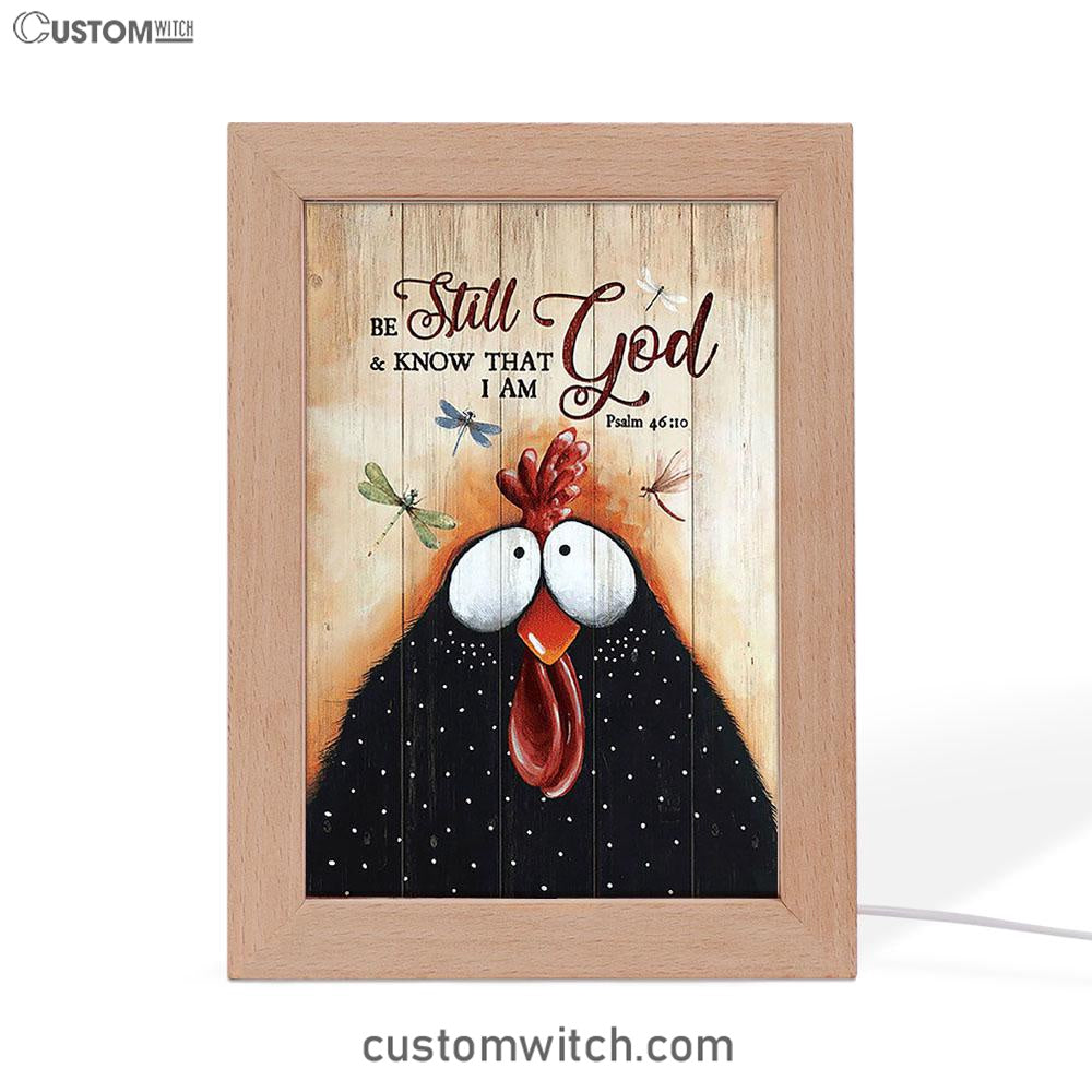 Black Chicken Dragonfly Be Still And Know That I Am God Frame Lamp - Christian Art - Religious Home Decor
