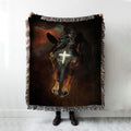 Black Horse Shinning Cross The Incredible Horse Woven Throw Blanket - Bible Verse Woven Blanket Art - Inspirational Art - Christian Home Decor