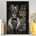 Black Lion Warrior God Will Fight For You Canvas Wall Art - Bible Verse Canvas Art - Inspirational Art - Christian Home Decor