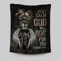 Black Lion Warrior God Will Fight For You Tapestry Wall Art - Bible Verse Tapestry Art - Inspirational Art - Christian Indoor Wall Tapestries