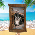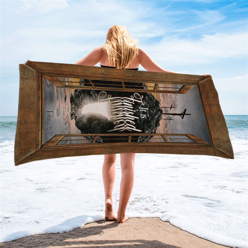 Black Rock Mountain Wooden Cross It Is Finished Beach Towel - Bible Verse Beach Towel - Inspirational Art - Christian Beach Towel