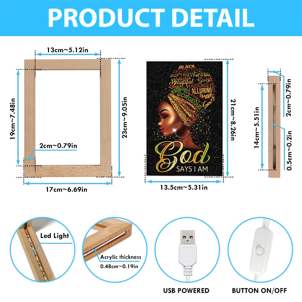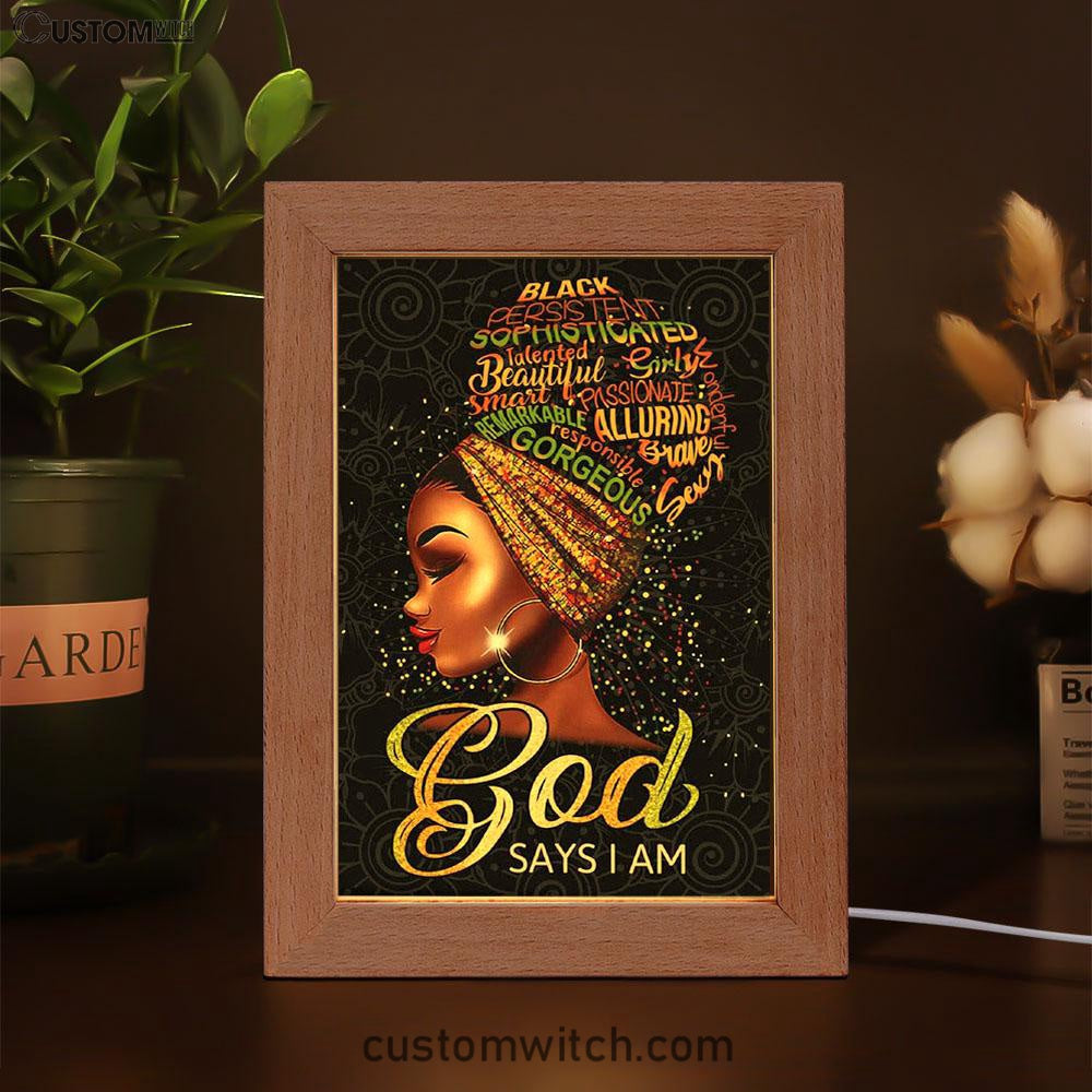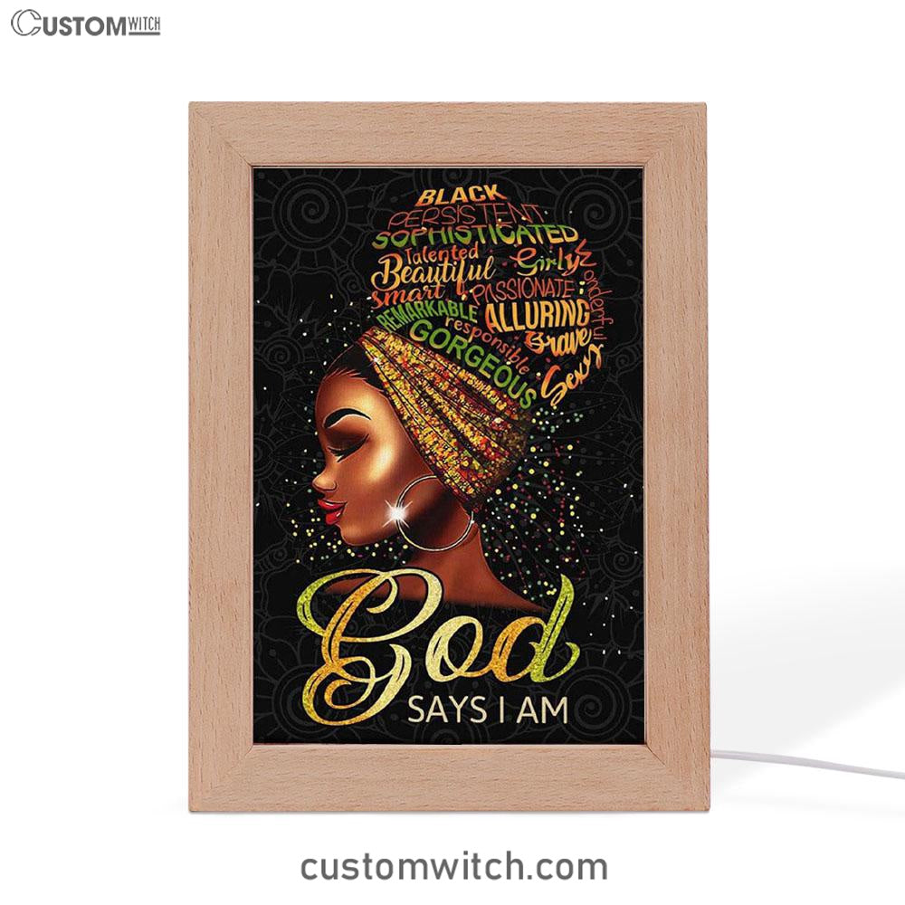 Black Woman God Says I Am Frame Lamp Prints - Bible Verse Decor - Scripture Art