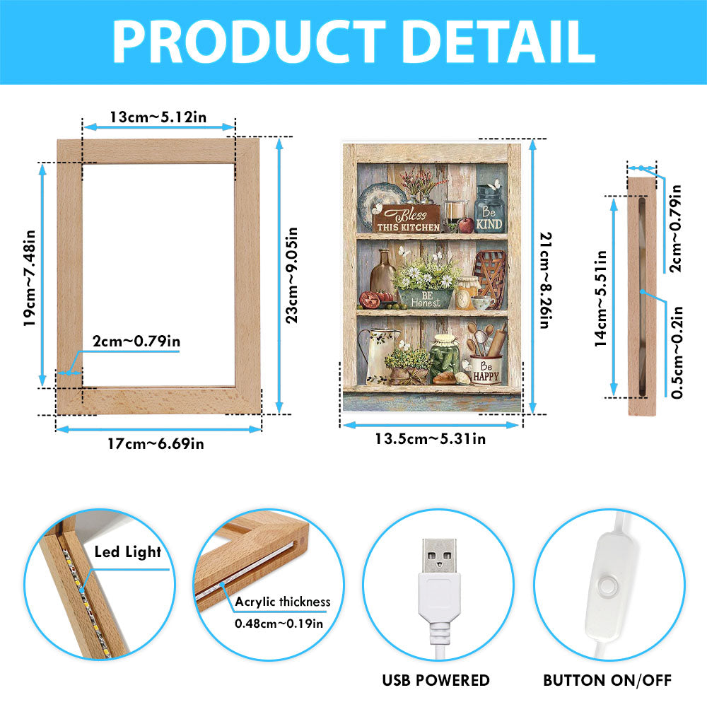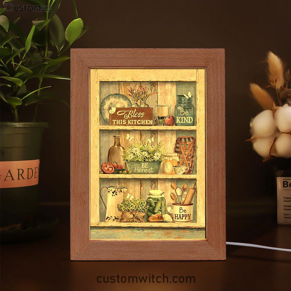Bless This Kitchen Be Happy Frame Lamp Art - Bible Verse Art - Christian Inspirational Decor