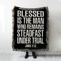 Blessed Is The Man Who Remains Steadfast Under Trial James 1 12 Woven Boho Blanket - Christian Woven Throw Blanket Decor