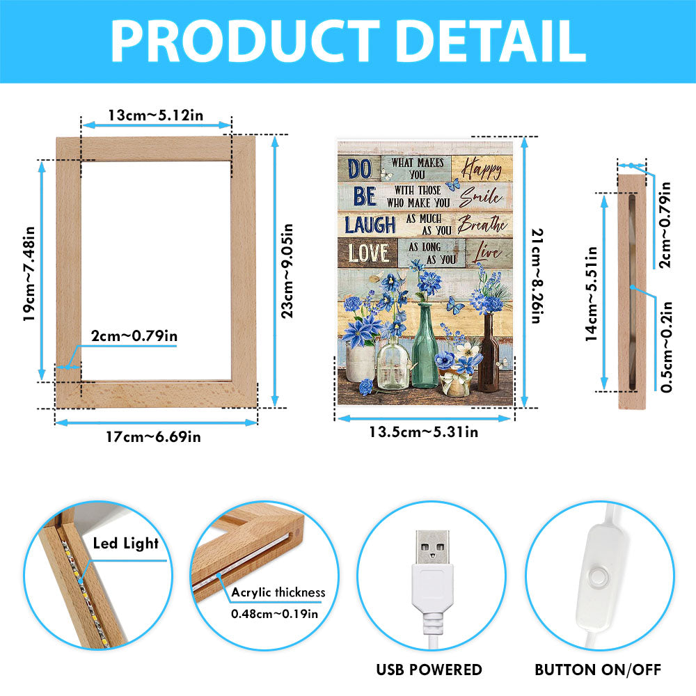 Blue Flower Do What Makes You Happy Frame Lamp Art - Bible Verse Wooden Lamp - Inspirational Art - Christian Home Decor