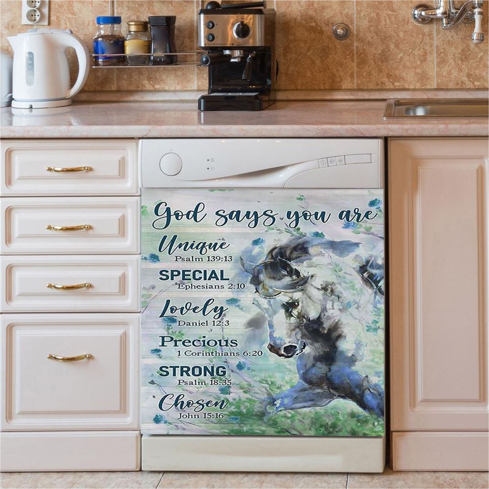 Blue Horse God Says You Are Unique Dishwasher Cover, Bible Verse Dishwasher Magnet Cover, Inspirational Kitchen Decor