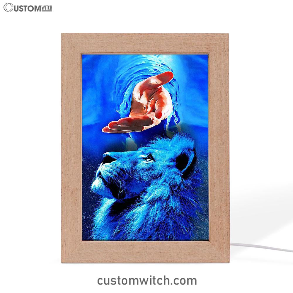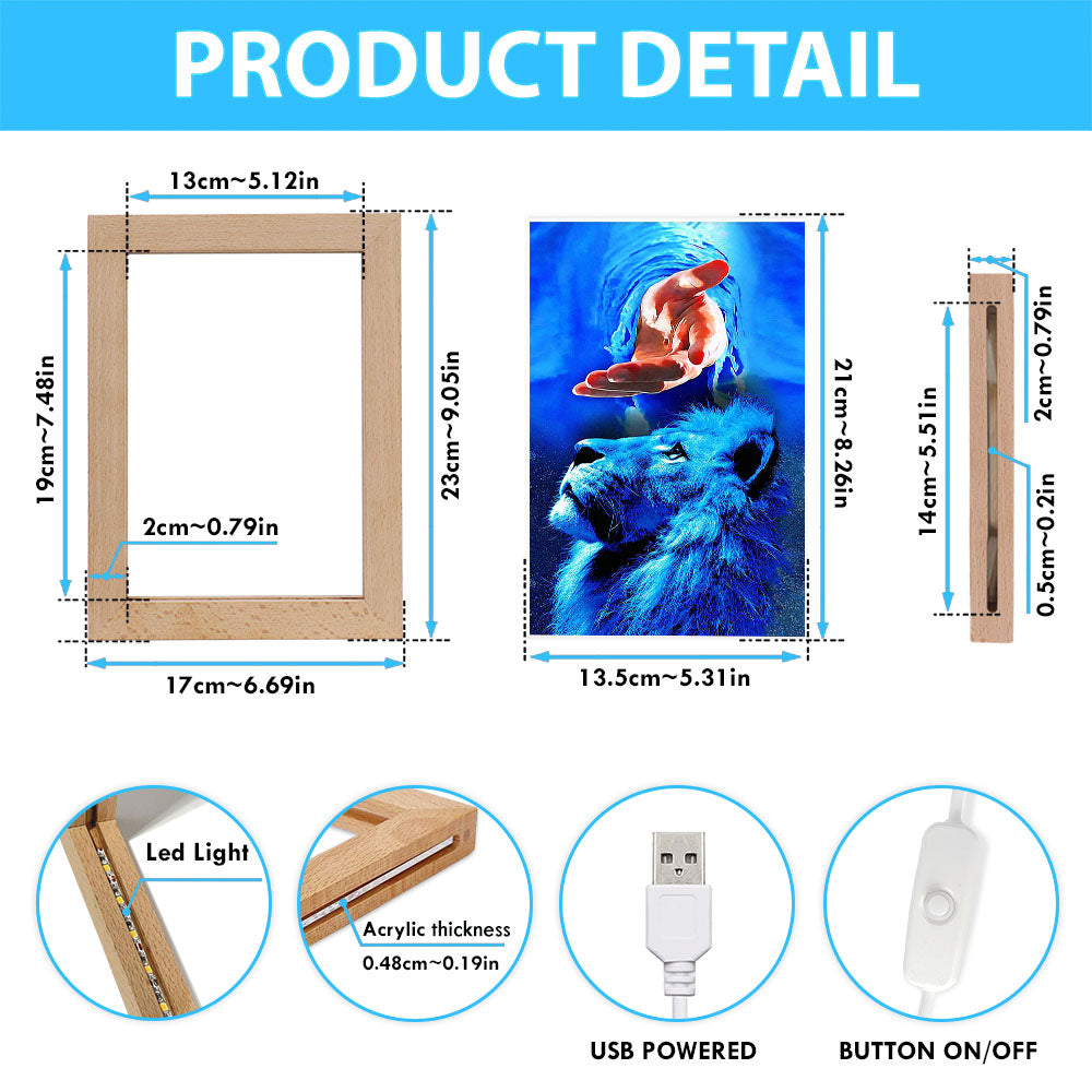 Blue Lion & Jesus Frame Lamp Art - Jesus Frame Lamp Pictures - Christian Night Light