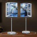 Blue Night, Magic Tree, Full Moon, White Dove, Walking With Jesus Table Lamp