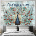 Blue Peacock God Says You Are Wall Art Tapestry - Christian Wall Art - Religious Art