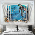 Blue Turtle He Opens A Window Wall Art Tapestry - Christian Wall Art - Religious Art