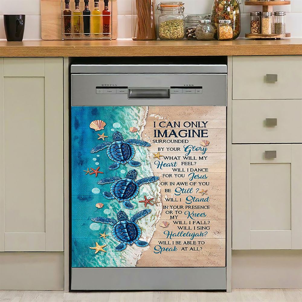 Blue Turtle I Can Only Imagine Dishwasher Cover, Christian Dishwasher Magnet Cover, Gift For Turle Lover