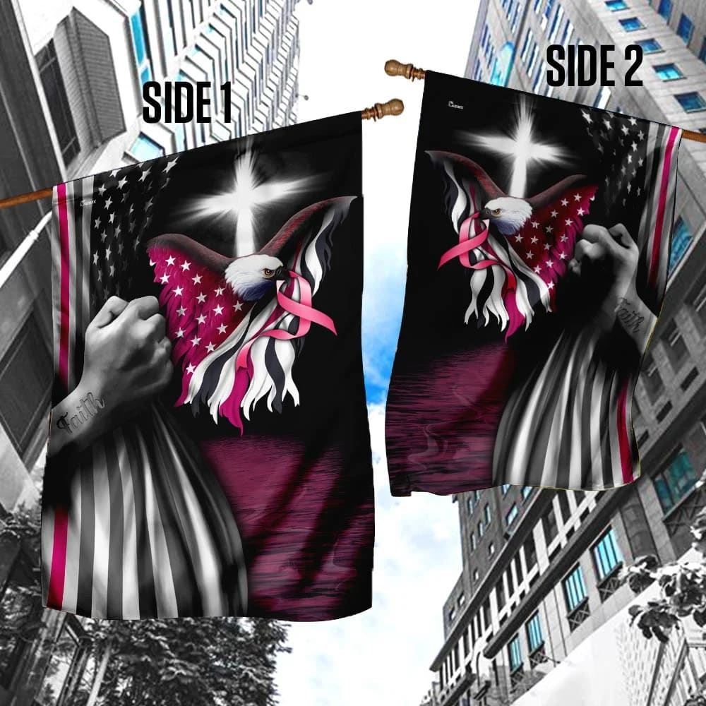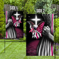 Breast Cancer Faith Christian Cross Garden Flag, Christian Flag, Scripture Flag, Garden Banner