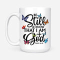 Butterflies Be Still And Know That I Am God Coffee Mug, Christian Mug, Bible Mug, Faith Gift, Encouragement Gift