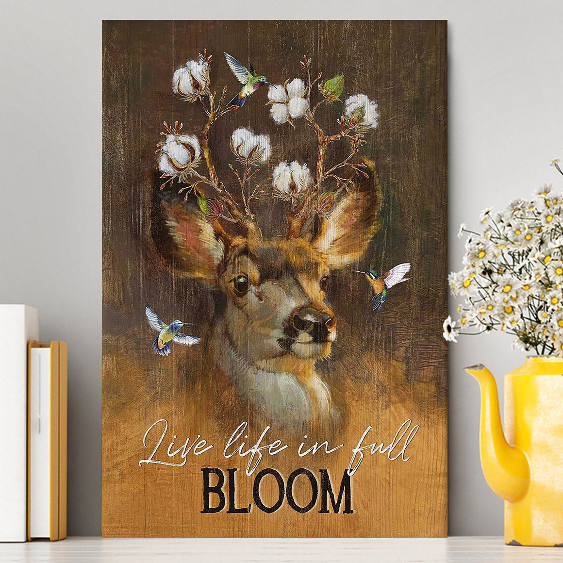 Deer Flower Crown Hummingbird Live Life In Full Bloom Canvas Art - Christian Art - Bible Verse Wall Art - Religious Home Decor