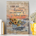 Every Day Is A New Beginning Boat Drawing Sunflower Vase Canvas - Christian Wall Art - Religious Home Decor