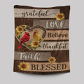 Cardinal Couple Sunflower Grateful Love Believe Tapestry Art - Bible Verse Wall Art - Christian Inspirational Wall Decor