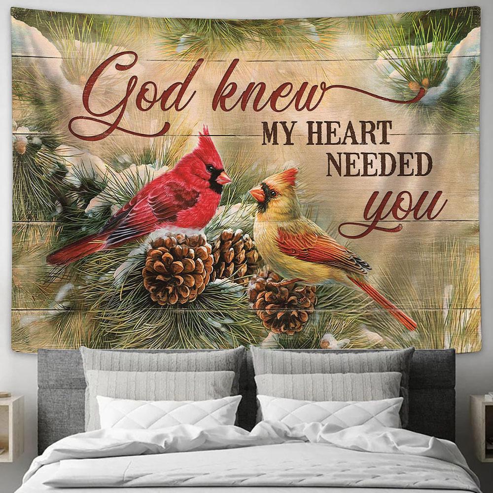 Cardinal God knew my heart needed you Tapestry Wall Art - Bible Verse Tapestry - Religious Tapestry Wall Hanging