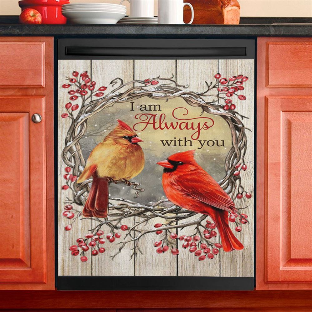 Cardinal I Am Always With You Dishwasher Cover, Christian Dishwasher Magnet Cover, Religious Kitchen Decor