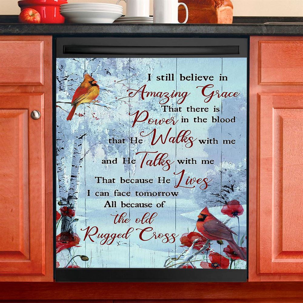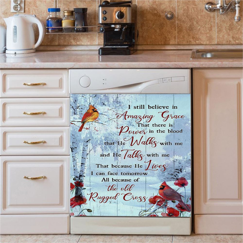 Cardinal I Still Believe In Amazing Grace Dishwasher Cover, Christian Dishwasher Magnet Cover, Bible Verse Kitchen Decor
