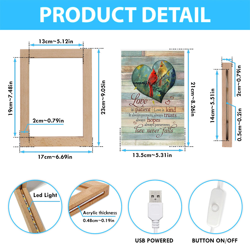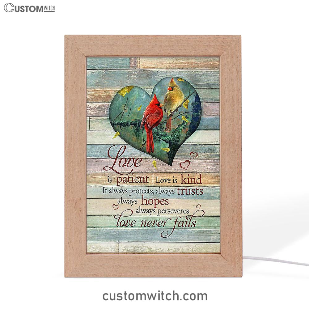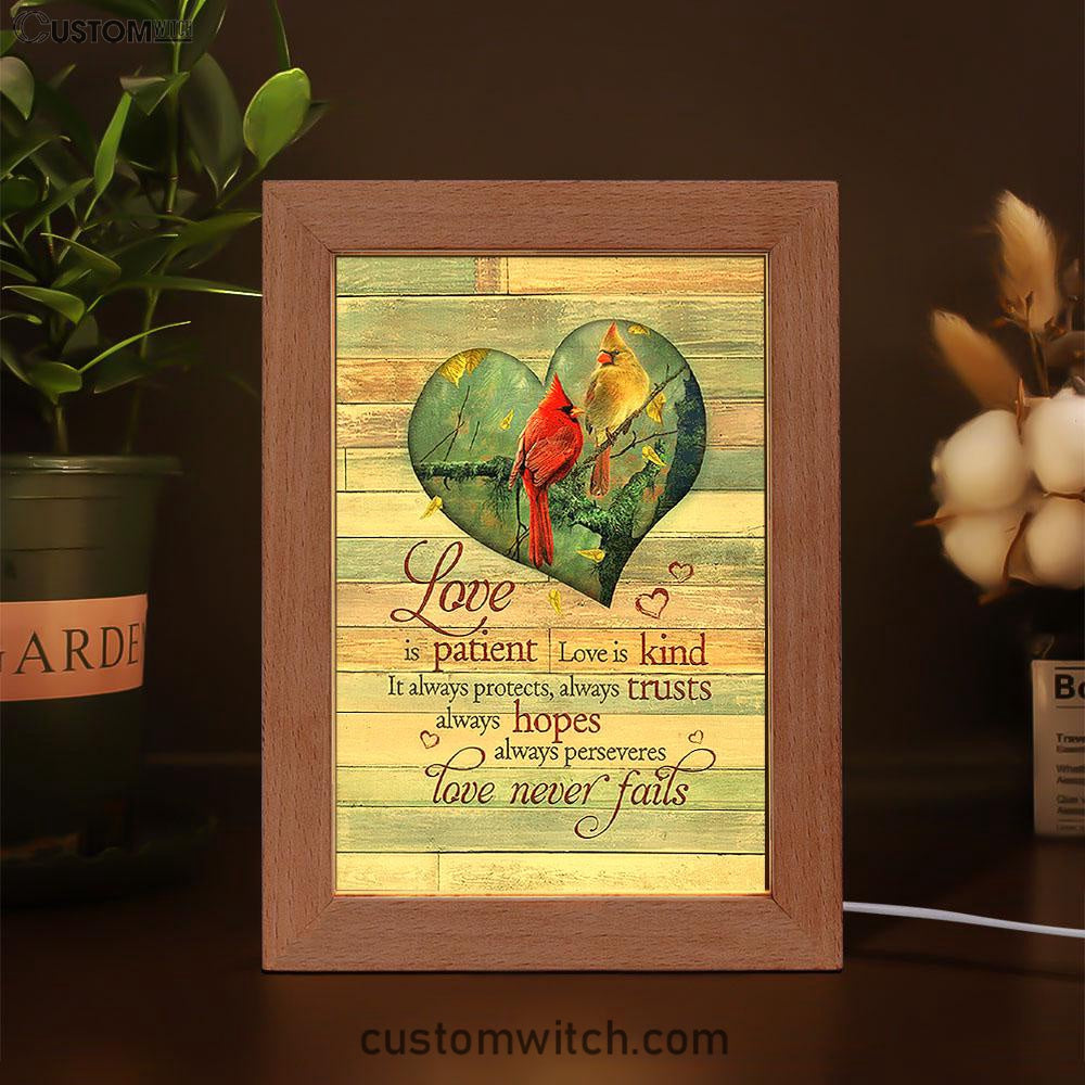 Cardinal Love Is Patient Love Is Kind Frame Lamp - Christian Art - Religious Home Decor