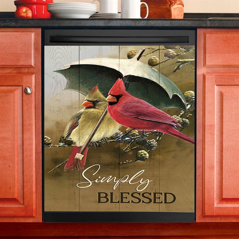 Cardinal Simply Blessed Dishwasher Cover, Bible Verse Dishwasher Magnet Cover, Christian Inspirational Kitchen Decor