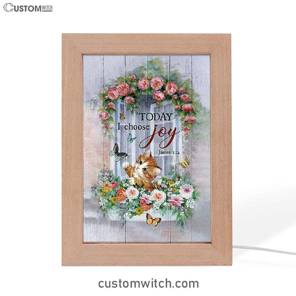 Cat Butterflies Today I Choose Joy Frame Lamp Art - Christian Art Decor - Gift For Cat Lover