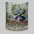 Cat Hydrangea Vase Book - Be Still And Know That I Am God Tapestry Wall Art - Christian Tapestries Prints - Bible Verse Tapestry Art