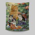 Cat Painting Purple Flower Garden Peace Tapestry Tapestry Wall Art - Christian Tapestries Prints - Bible Verse Tapestry Art