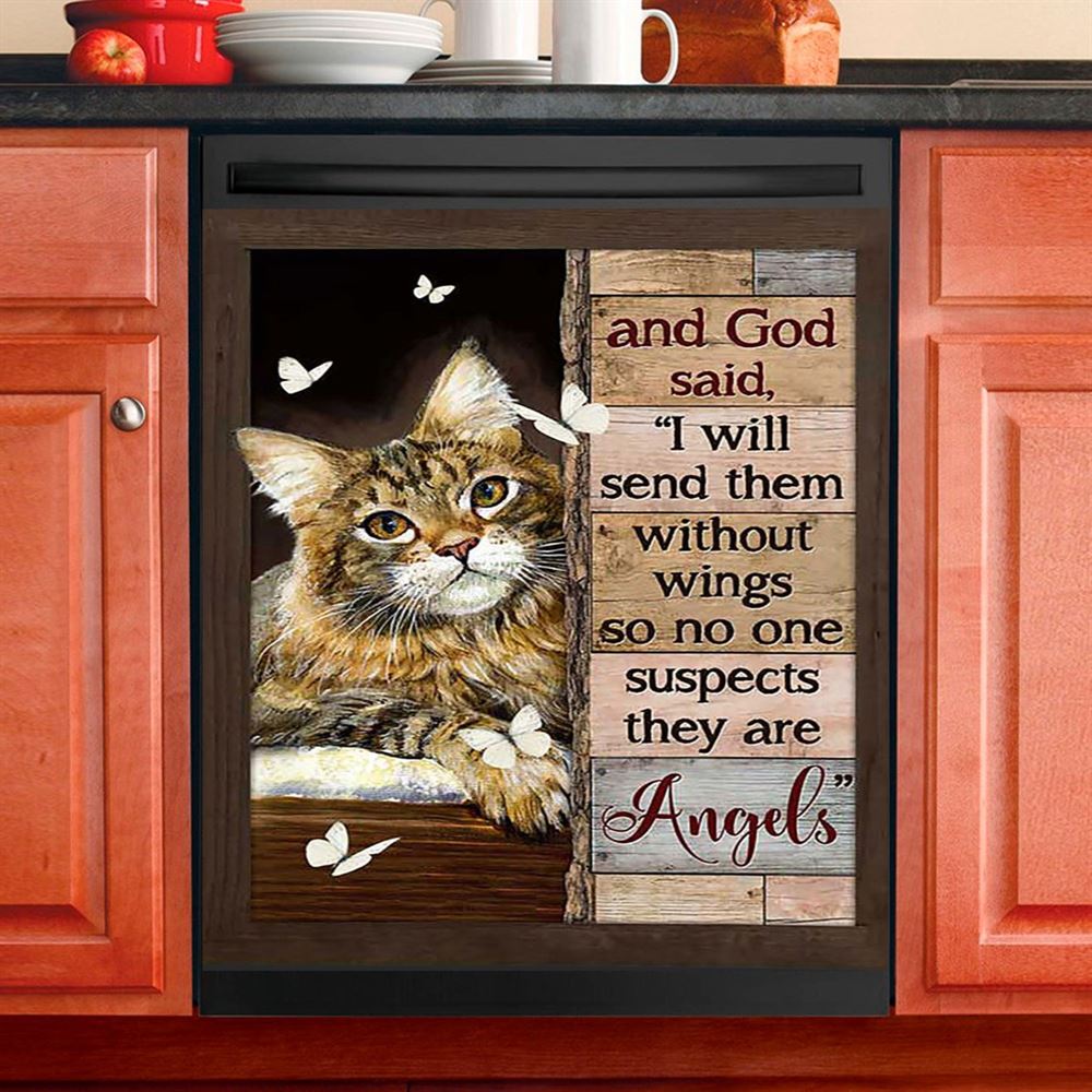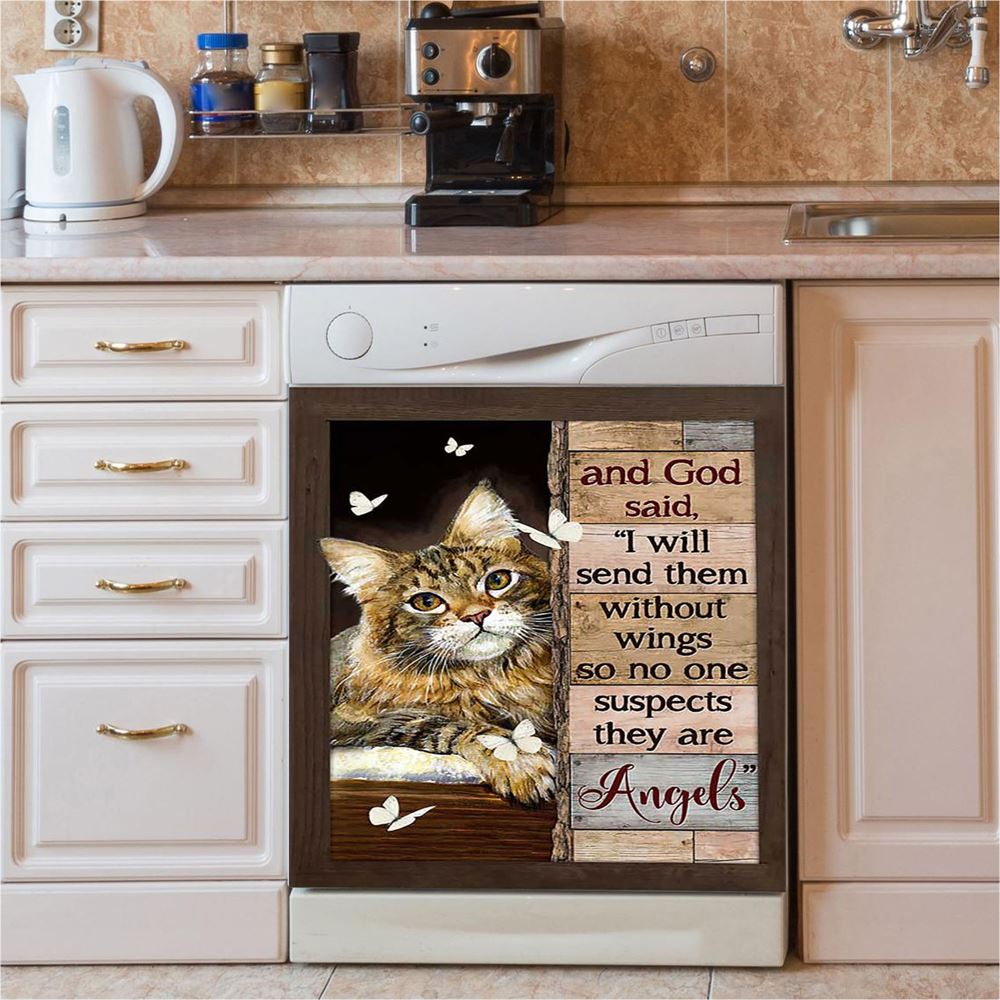 Cat White Butterfly I Will Send Them Without Wings Dishwasher Cover, Christian Dishwasher Magnet Cover, Gift For Cat Lover