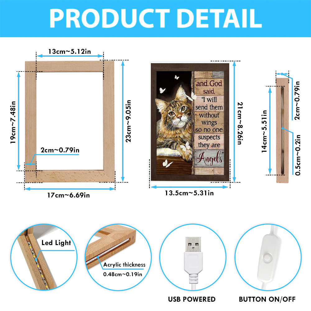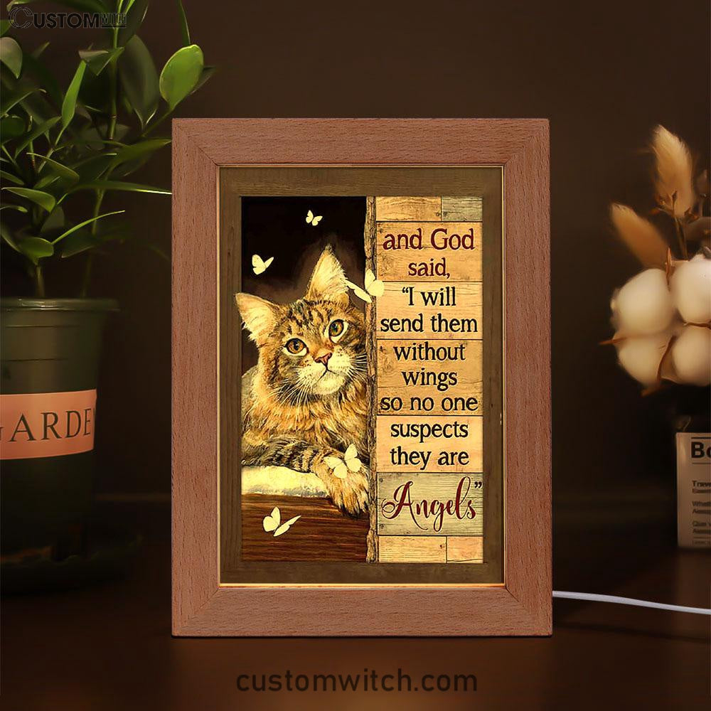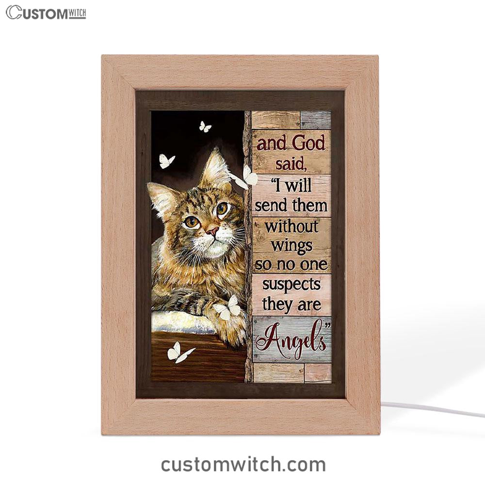 Cat White Butterfly I Will Send Them Without Wings Frame Lamp Art - Christian Art Decor - Gift For Cat Lover