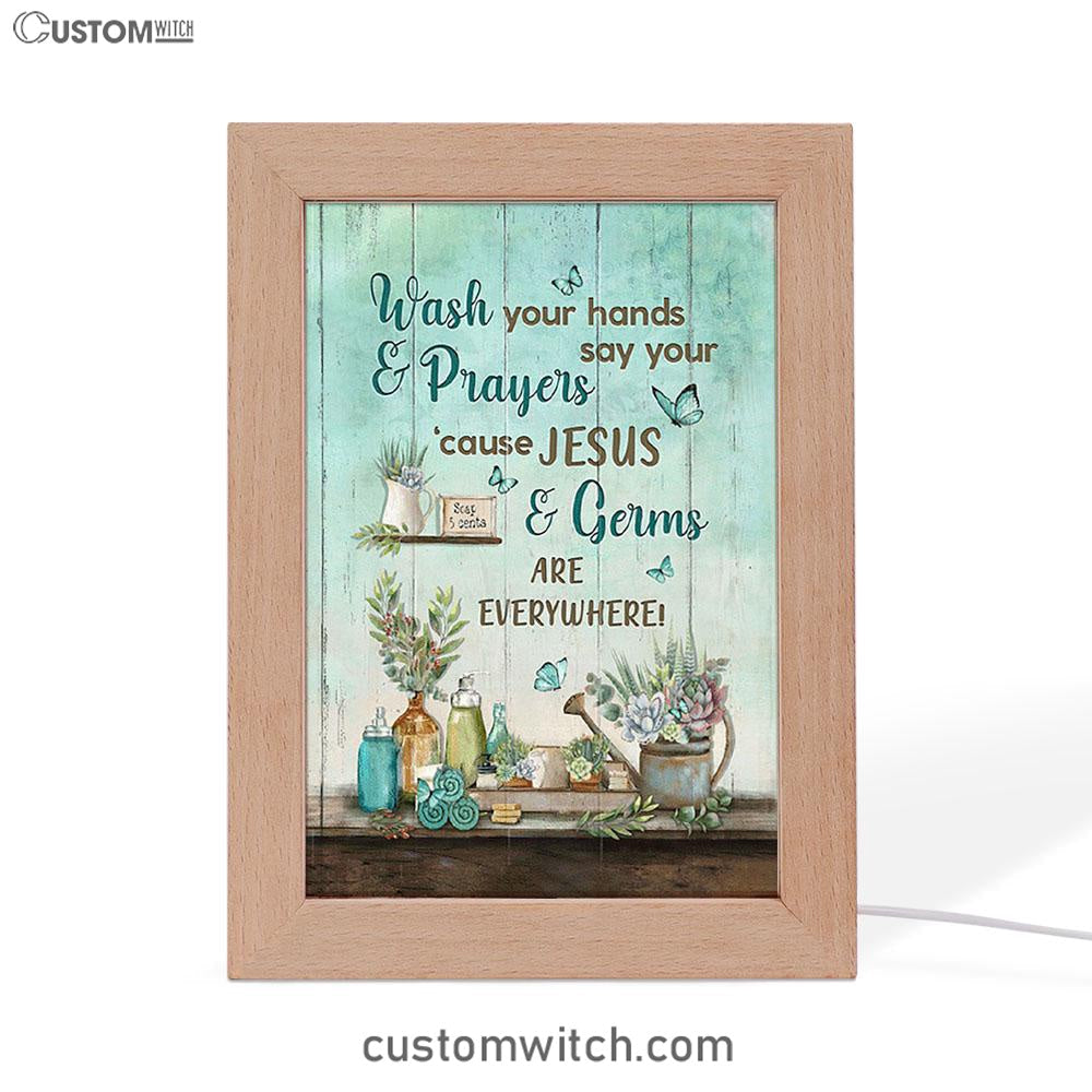 Cause Jesus And Germs Are Everywhere Bathroom Blue Butterfly Frame Lamp Art - Christian Night Light