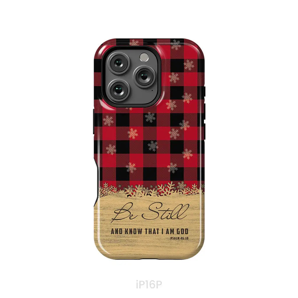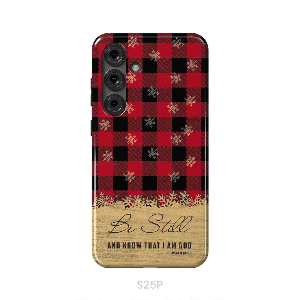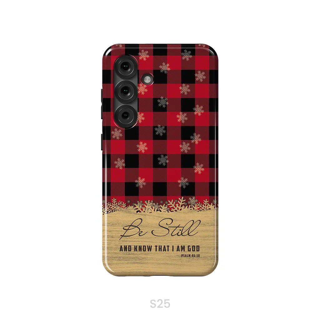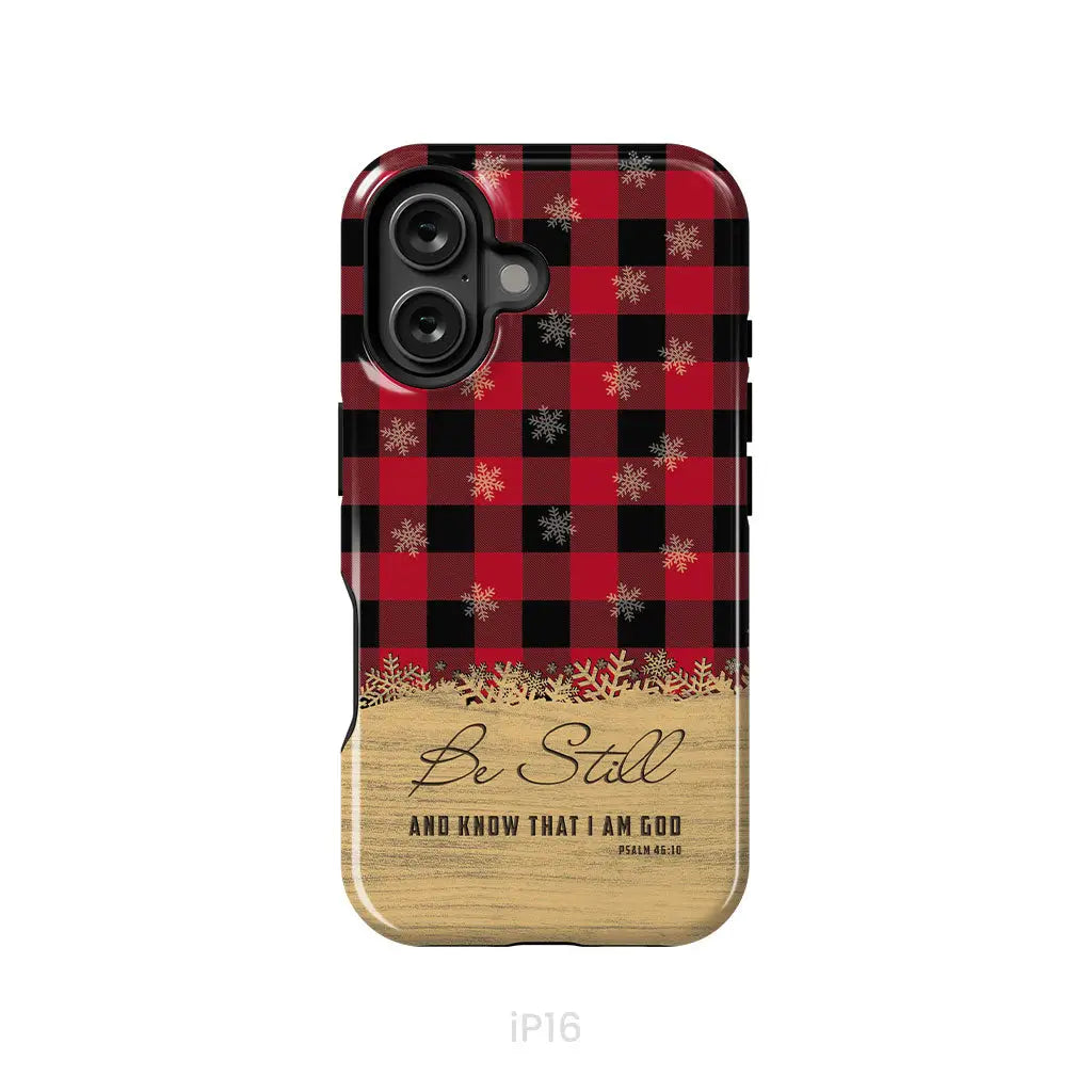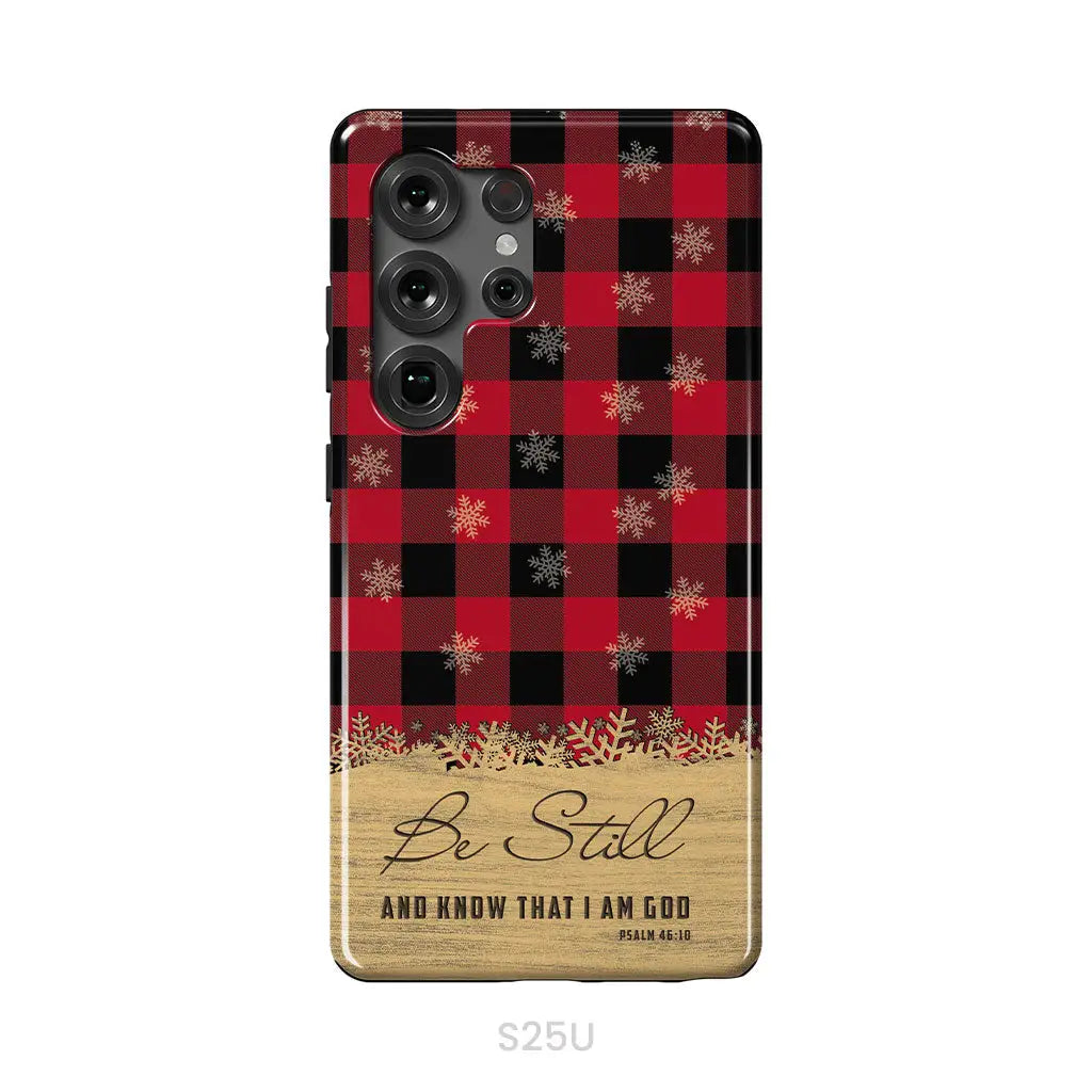 Be still and know that I am God, red black buffalo plaid, Christmas phone case
