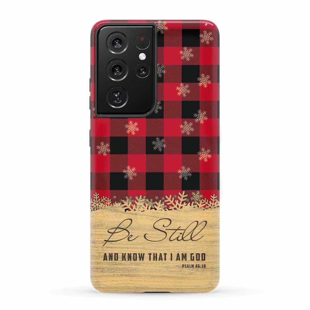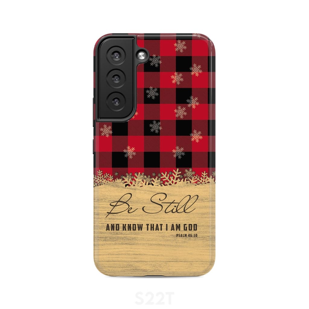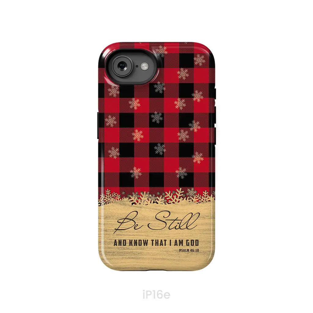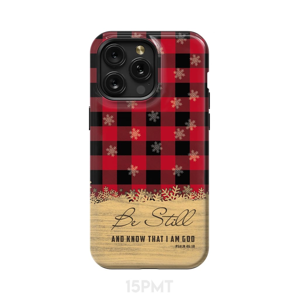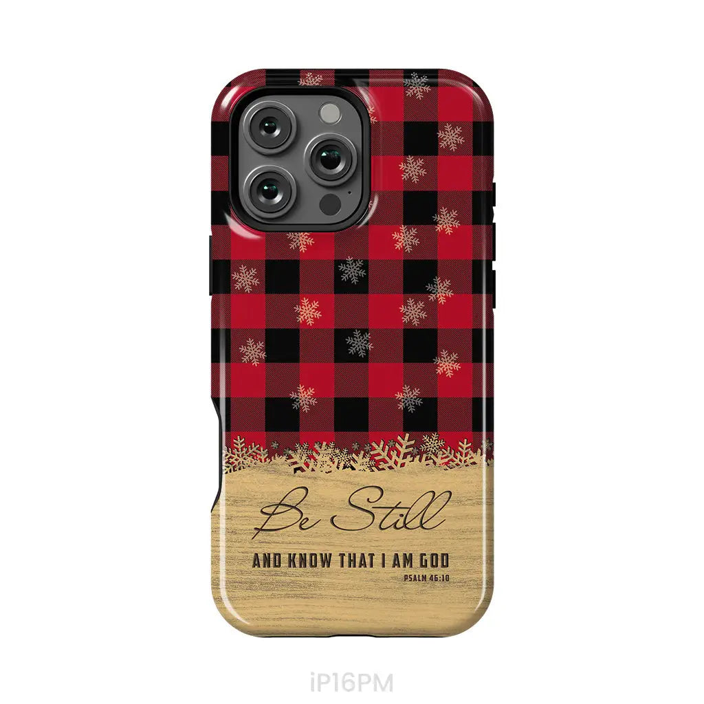 Be still and know that I am God, red black buffalo plaid, Christmas phone case