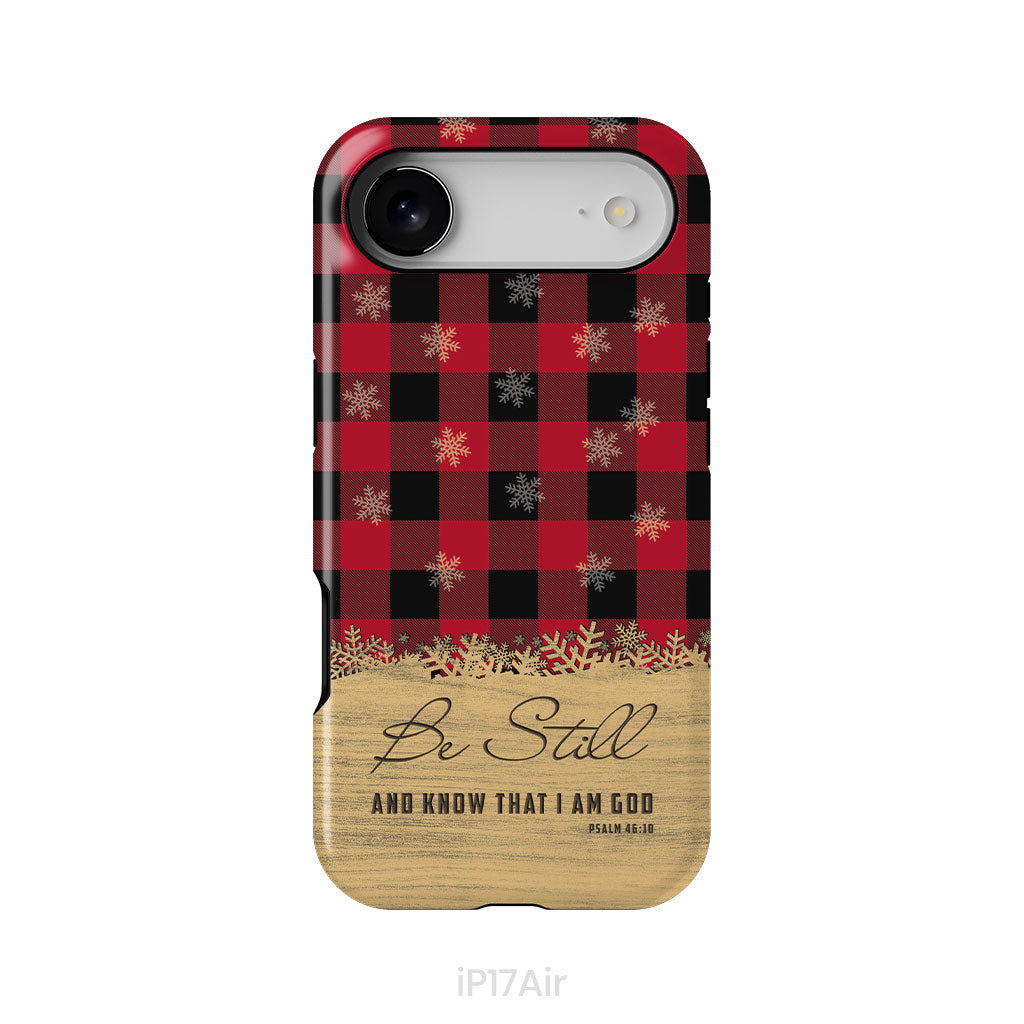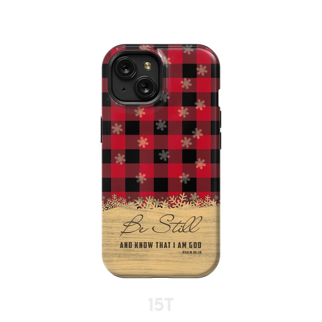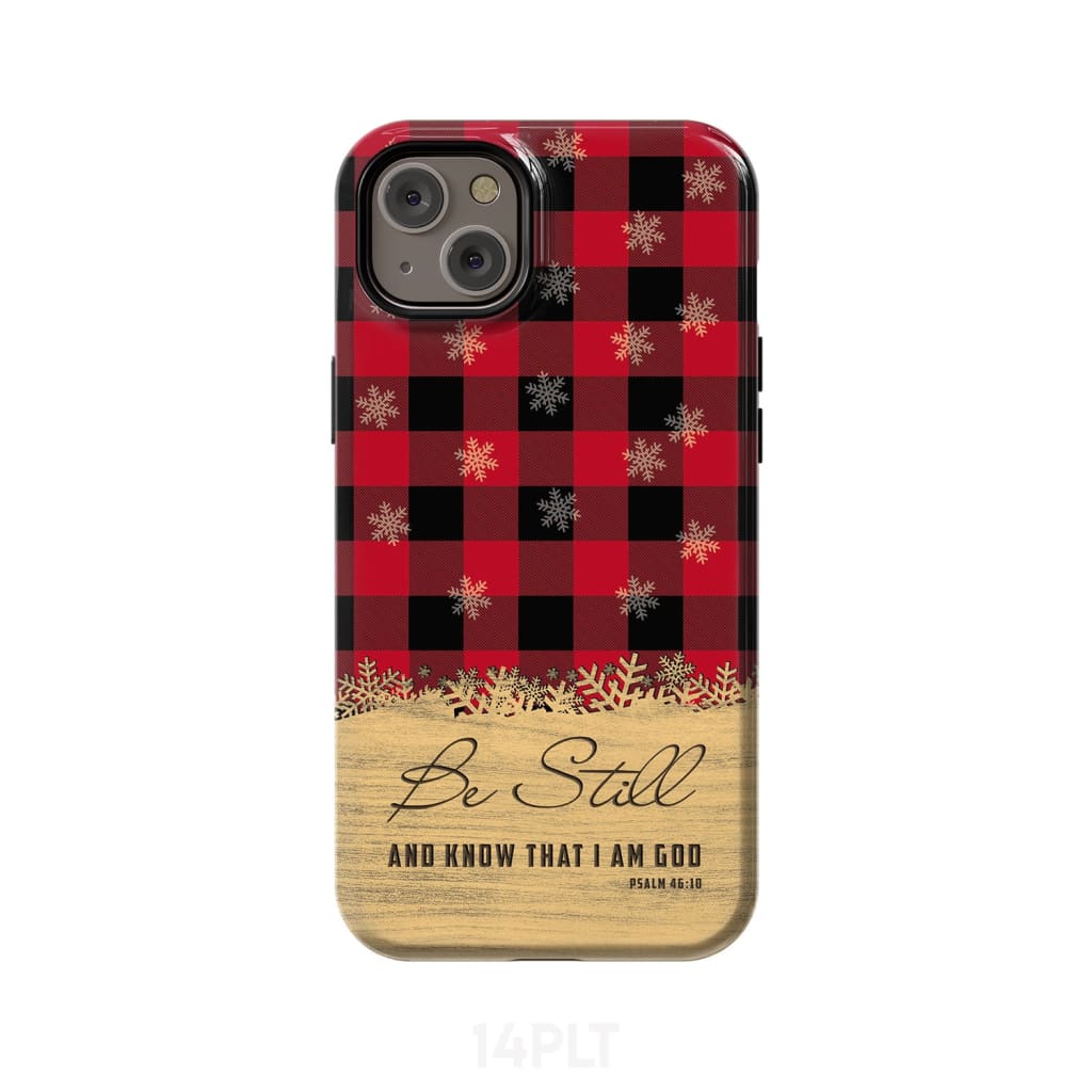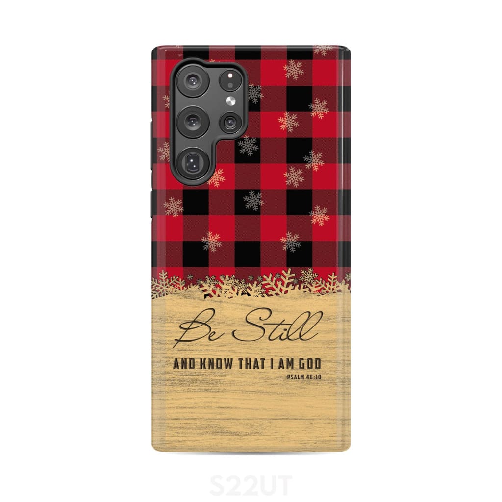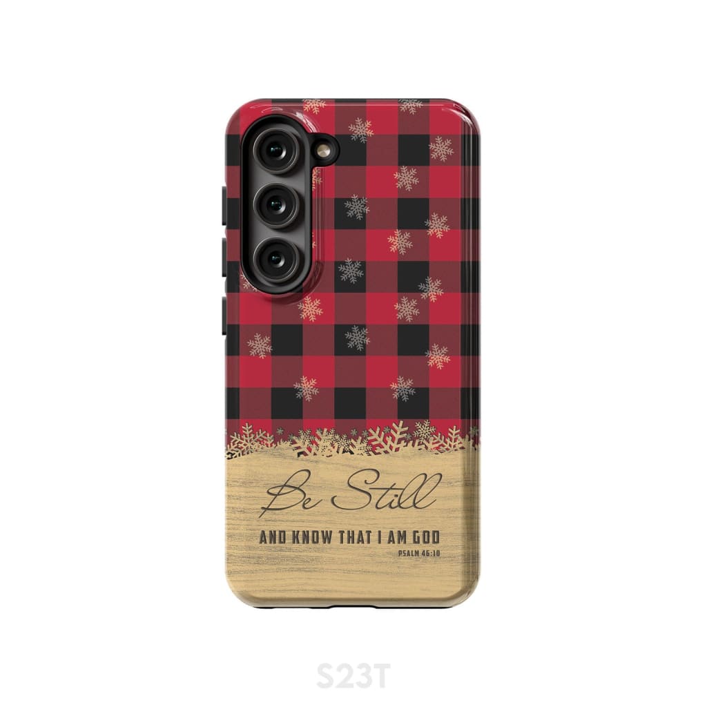 Be still and know that I am God, red black buffalo plaid, Christmas phone case