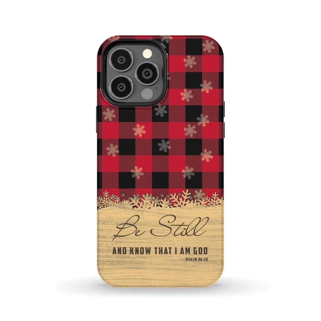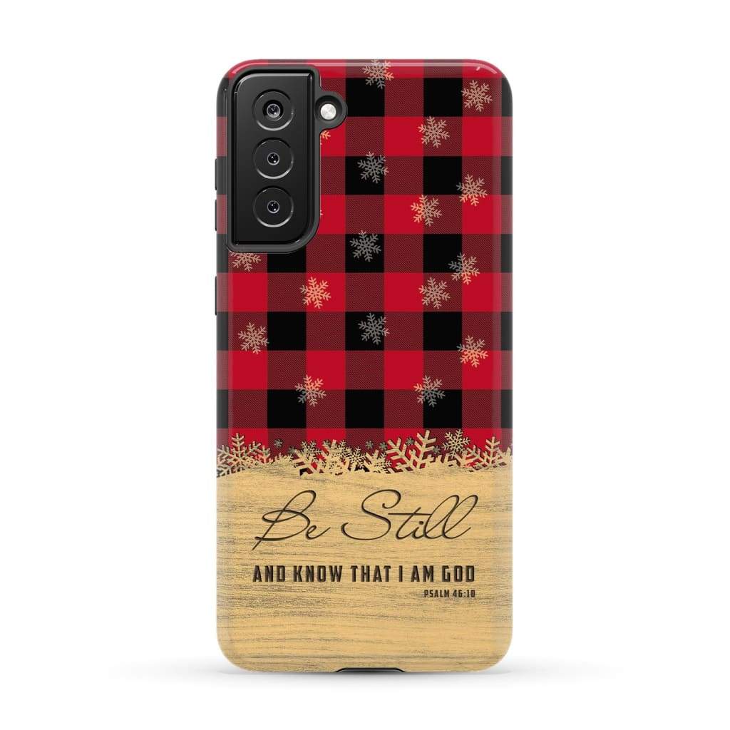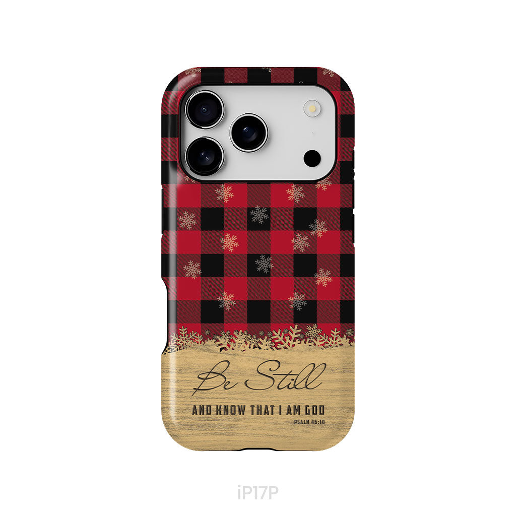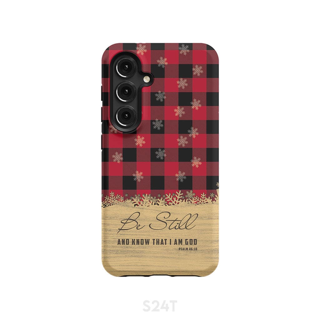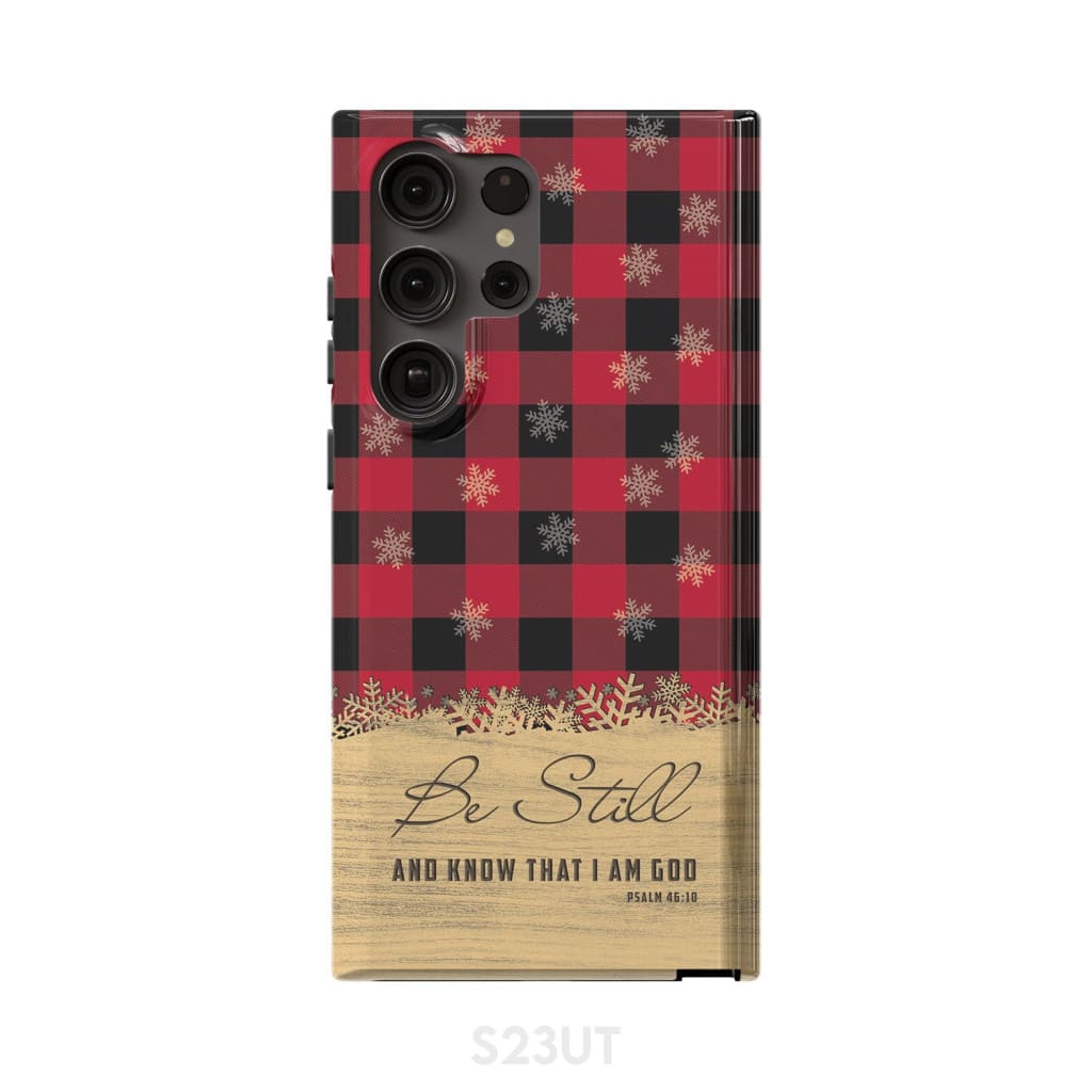 Be still and know that I am God, red black buffalo plaid, Christmas phone case