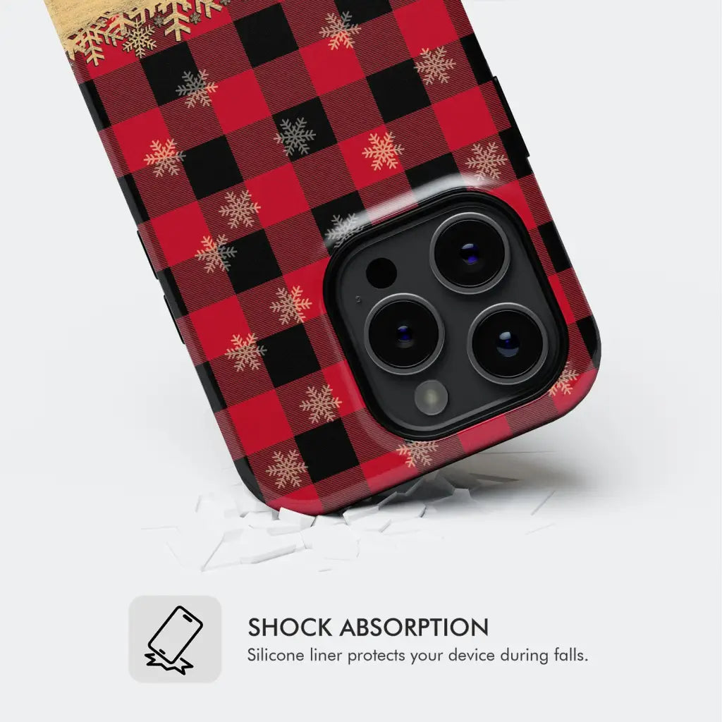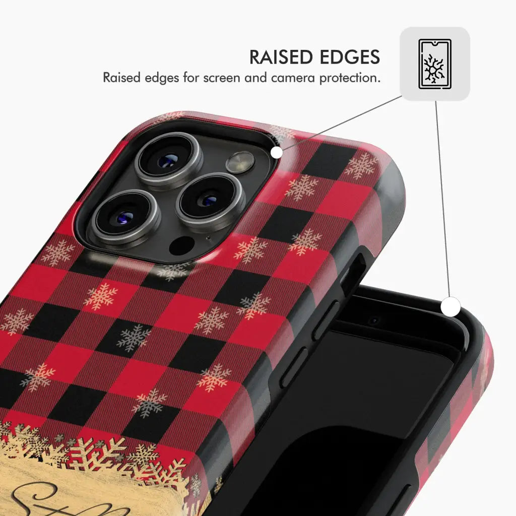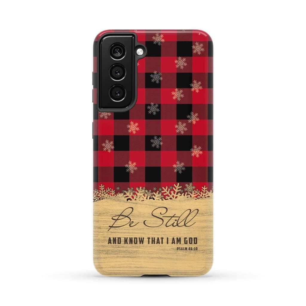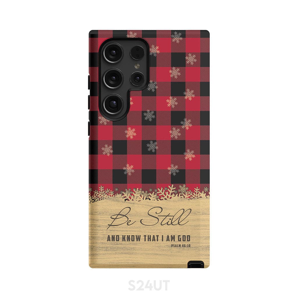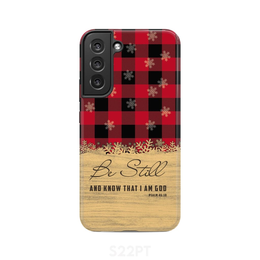Be still and know that I am God, red black buffalo plaid, Christmas phone case