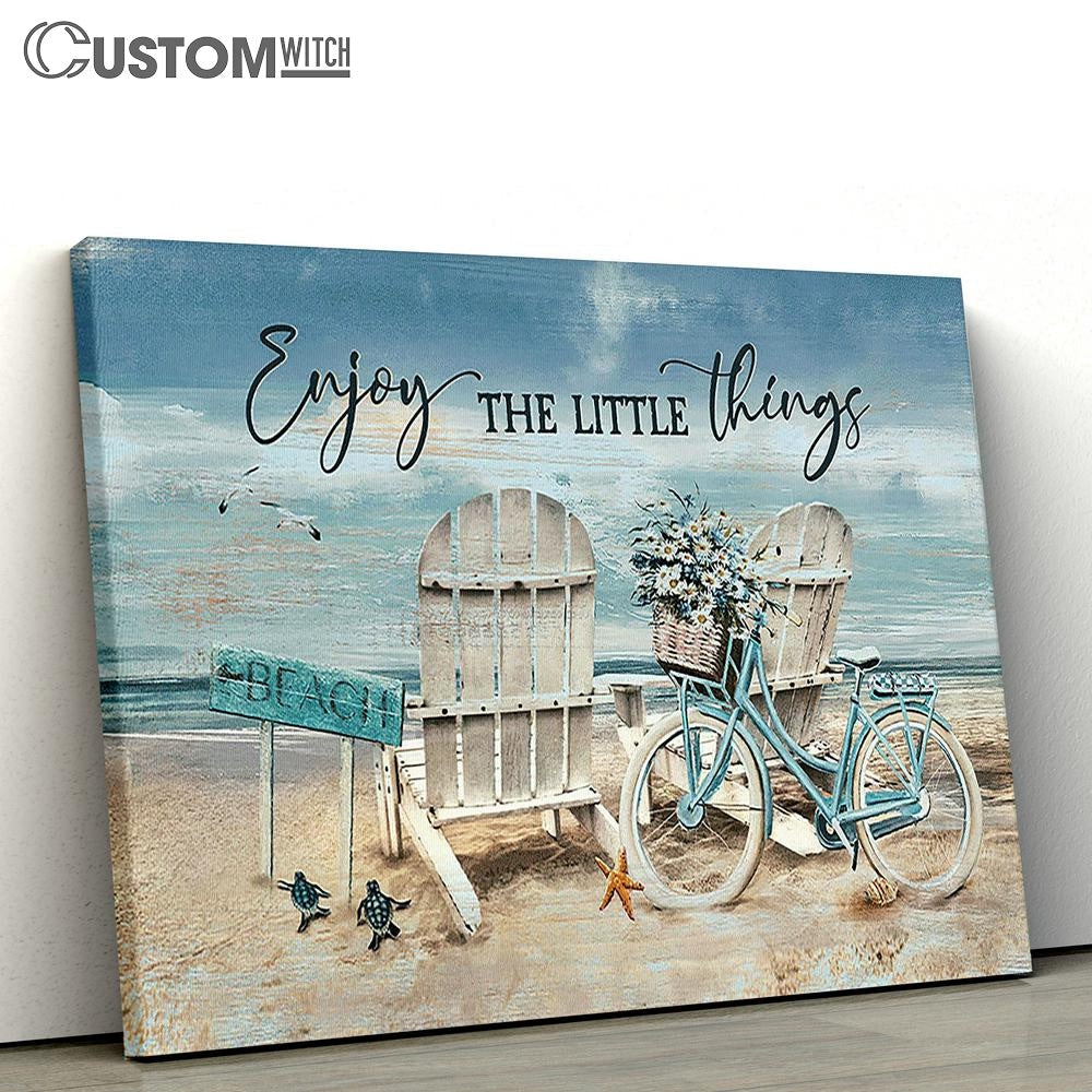 Chair Blue Bicycle Enjoy The Little Things Canvas Wall Art - Bible Verse Canvas - Religious Prints