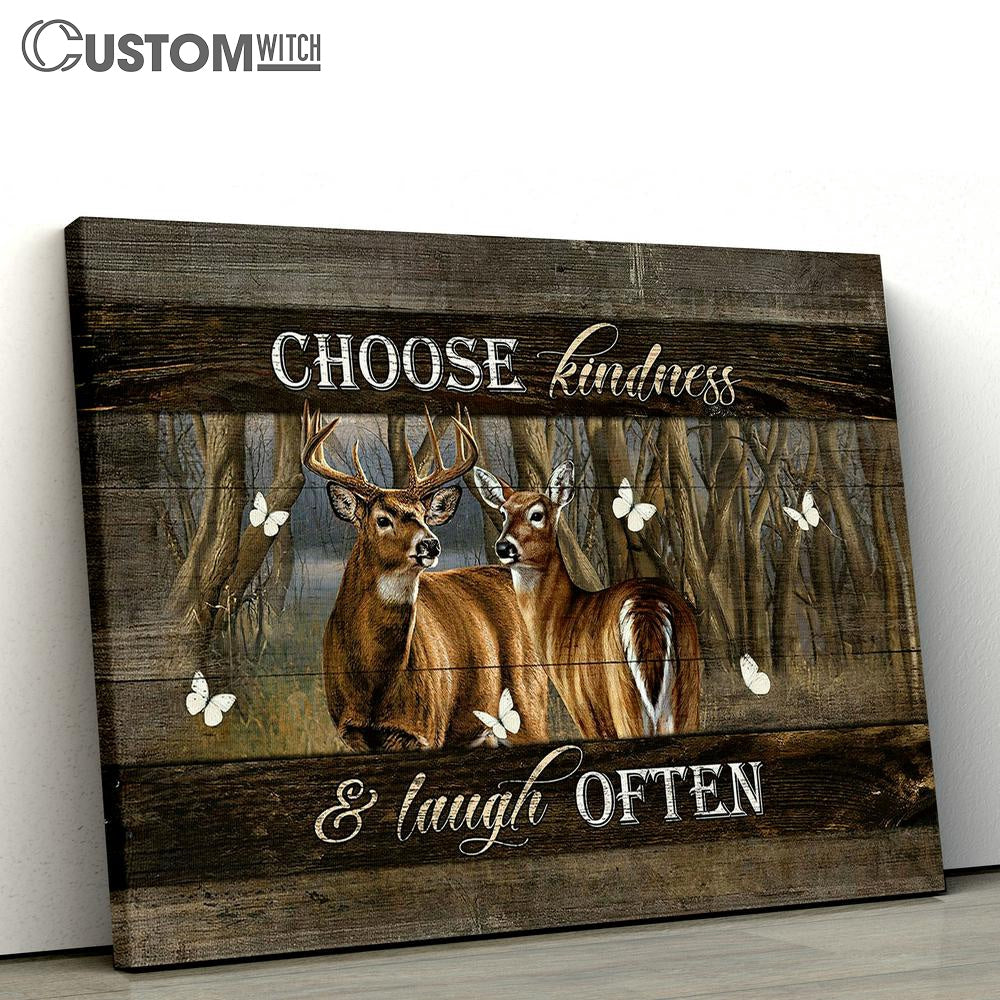Choose kindness and laugh often Deer White butterfly Canvas Wall Art - Bible Verse Canvas - Religious Prints