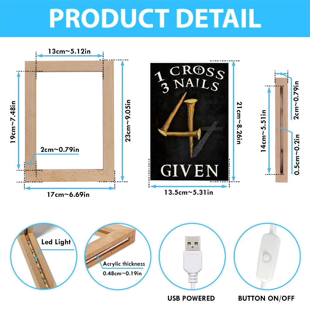 Christian 1 Cross 3 Nails 4 Given Frame Lamp Prints - Bible Verse Decor - Scripture Art