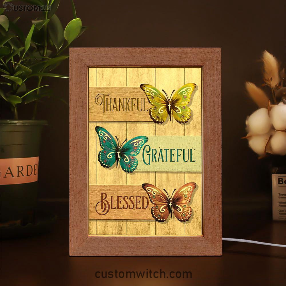 Christian Butterfly Thankful Grateful Blessed Frame Lamp Prints - Bible Verse Decor - Scripture Art