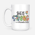 Christian Coffee Mug She Is Strong Proverbs 3125, Butterfly, Christian Mug, Bible Mug, Faith Gift, Encouragement Gift