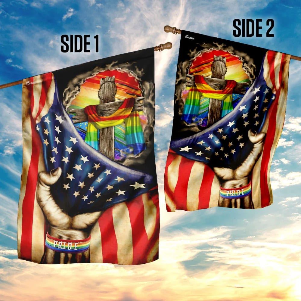 Christian Cross In LGBT Pride Flag, Outdoor Christian House Flag, Christian Flag, Scripture Flag, Garden Banner