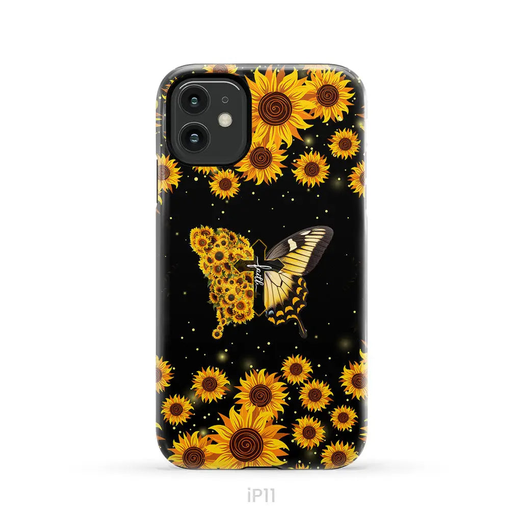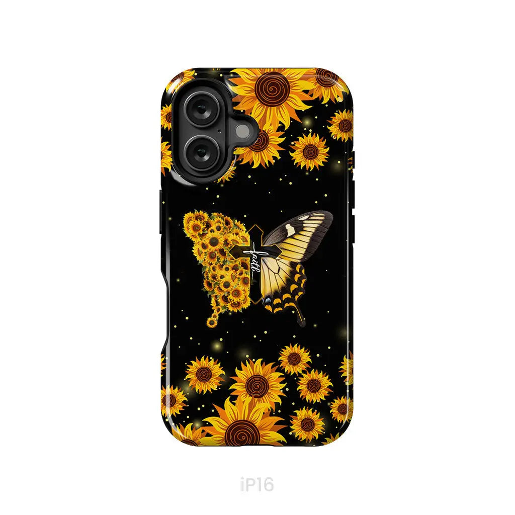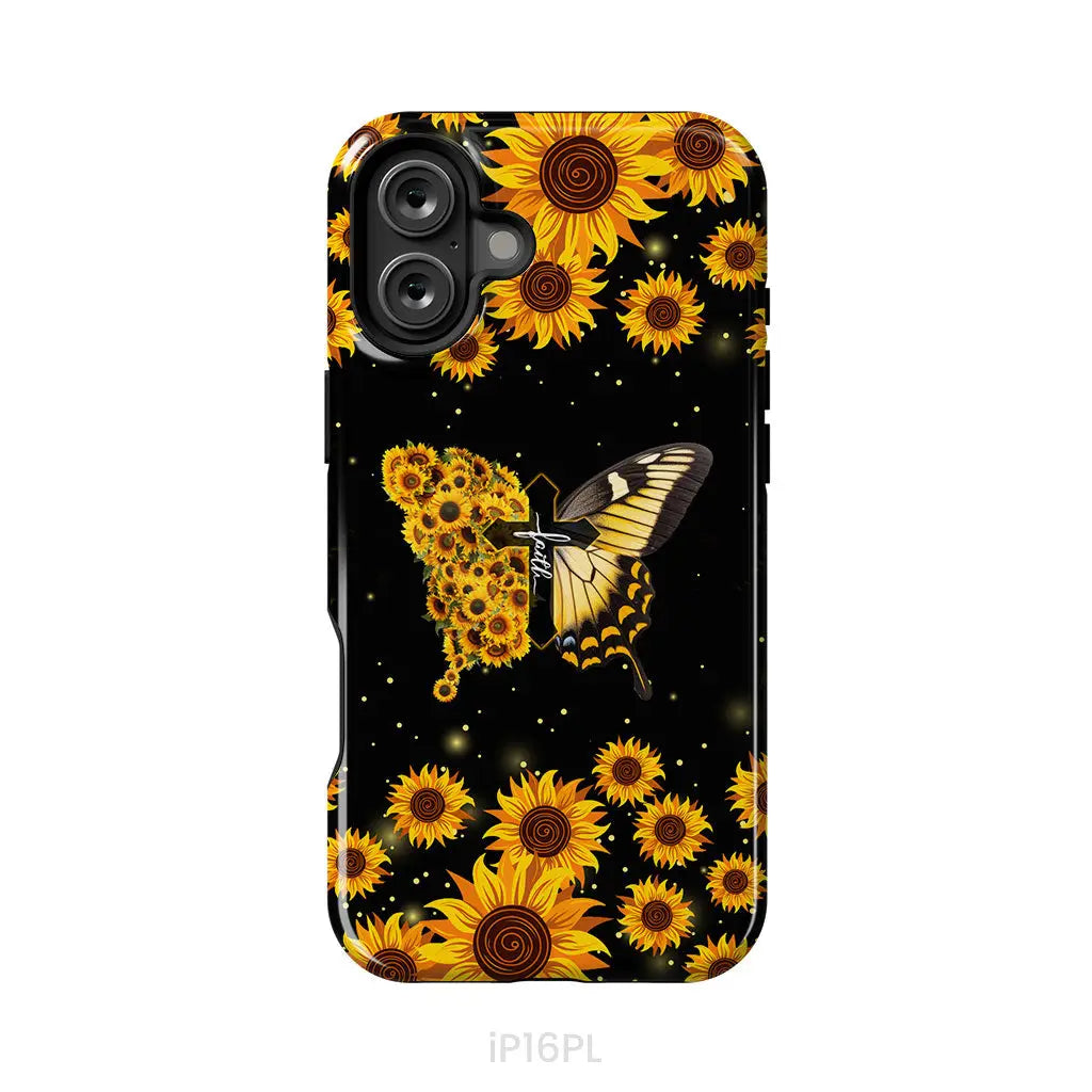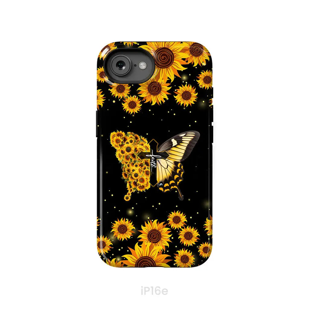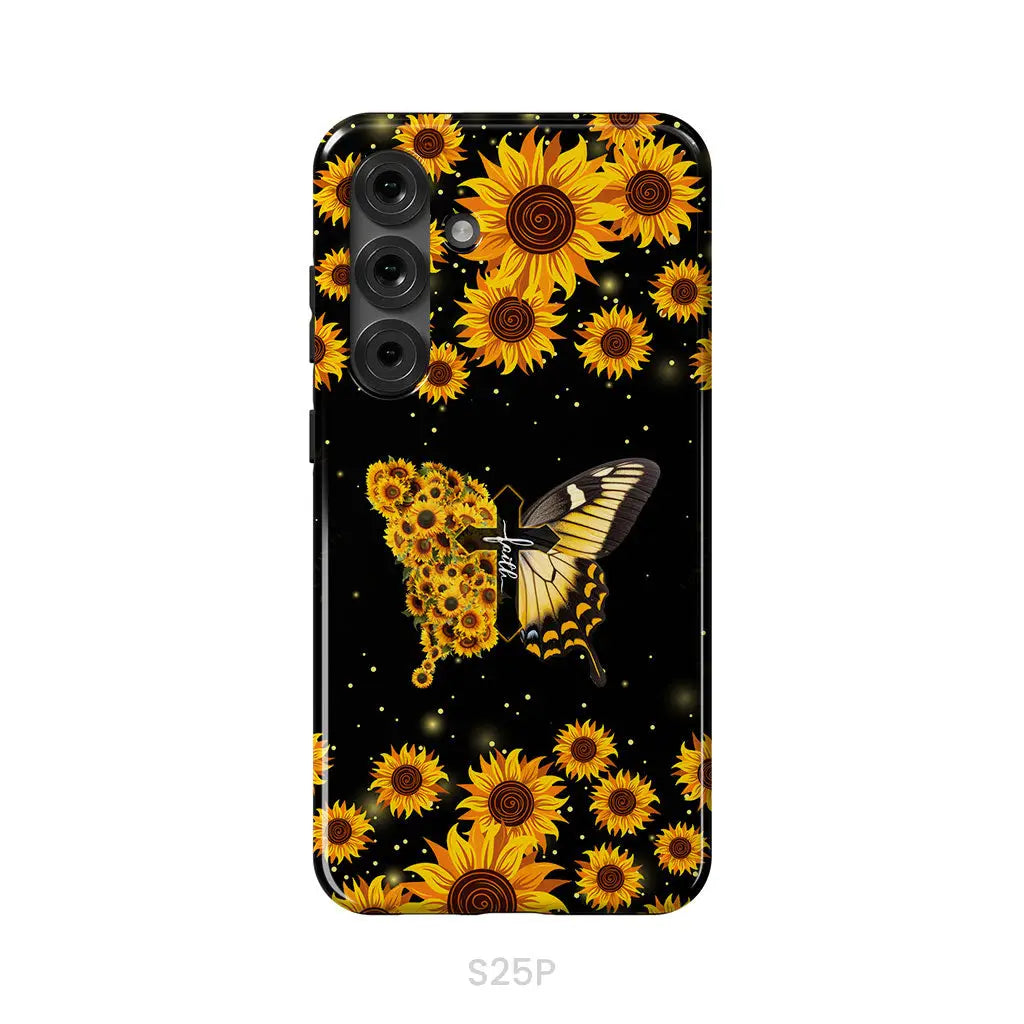 Faith Cross, Butterfly Sunflower, Christian Phone Case