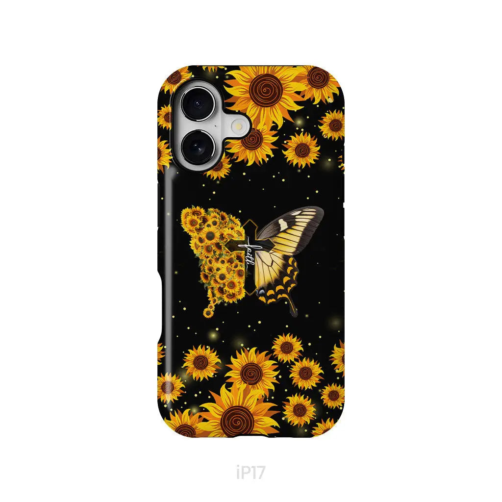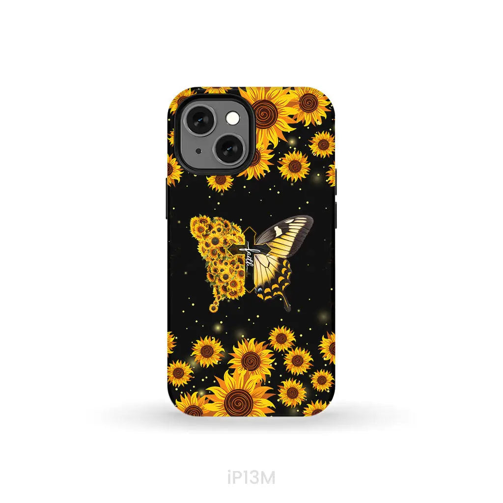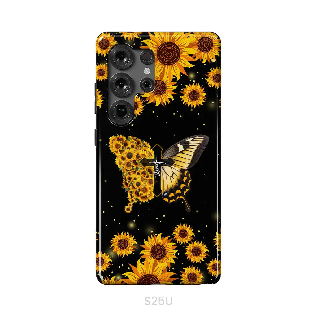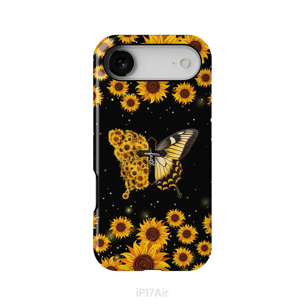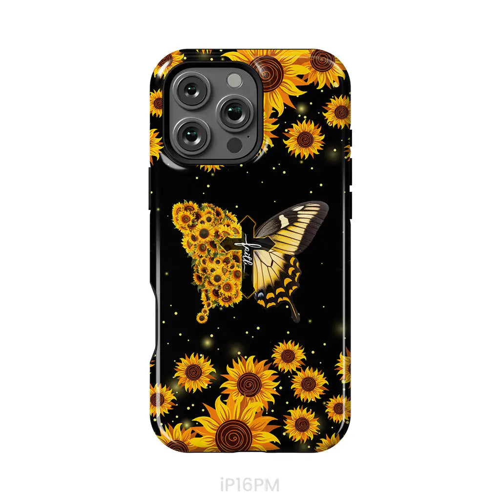 Faith Cross, Butterfly Sunflower, Christian Phone Case