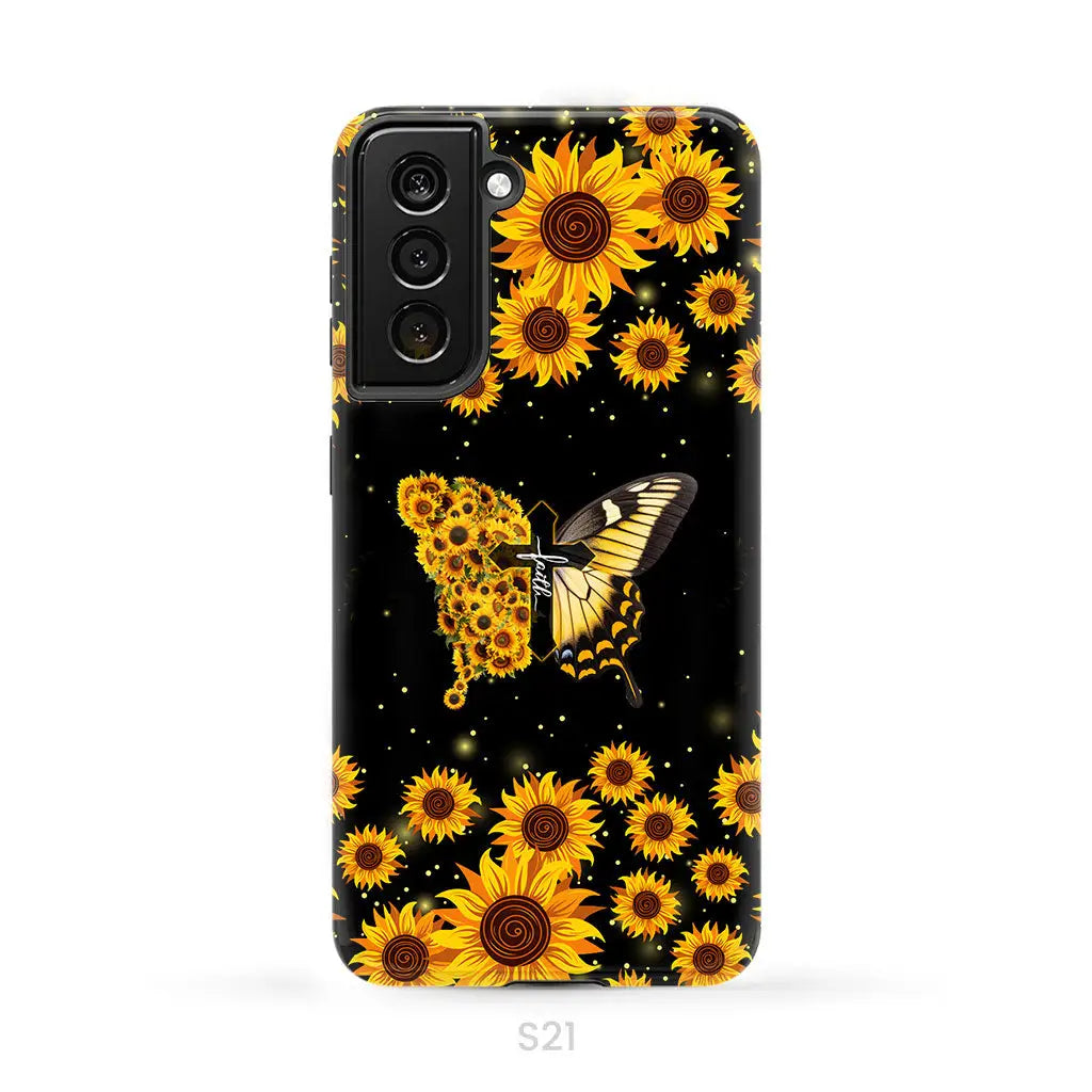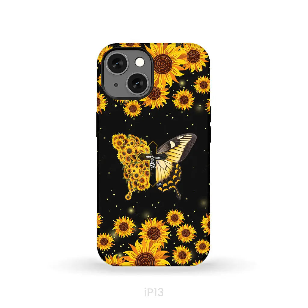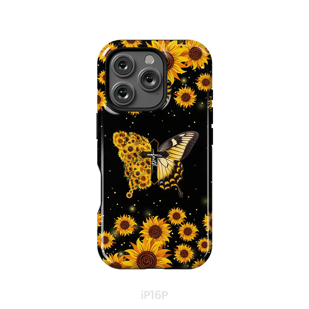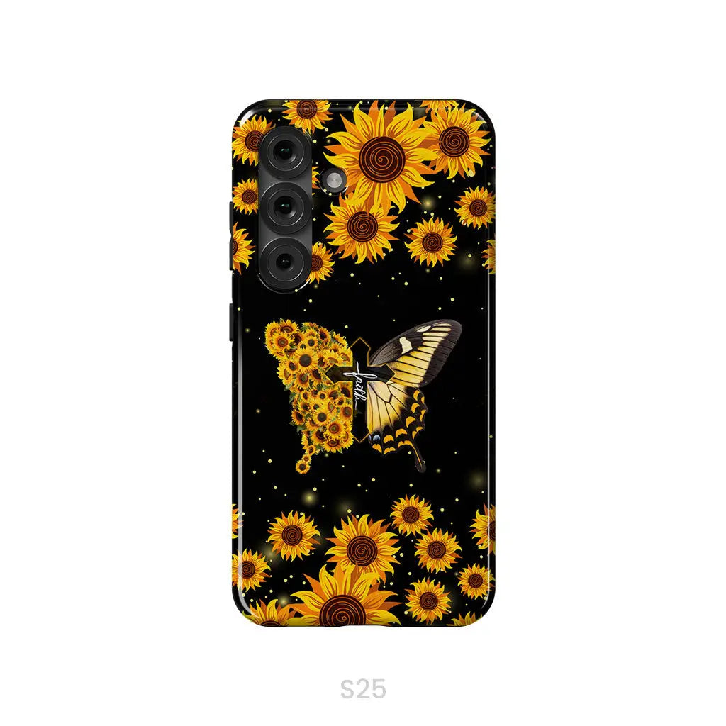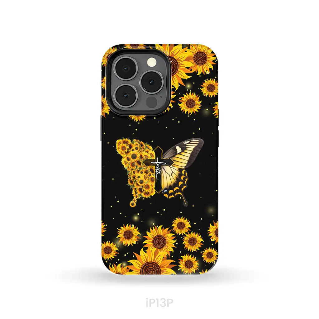 Faith Cross, Butterfly Sunflower, Christian Phone Case